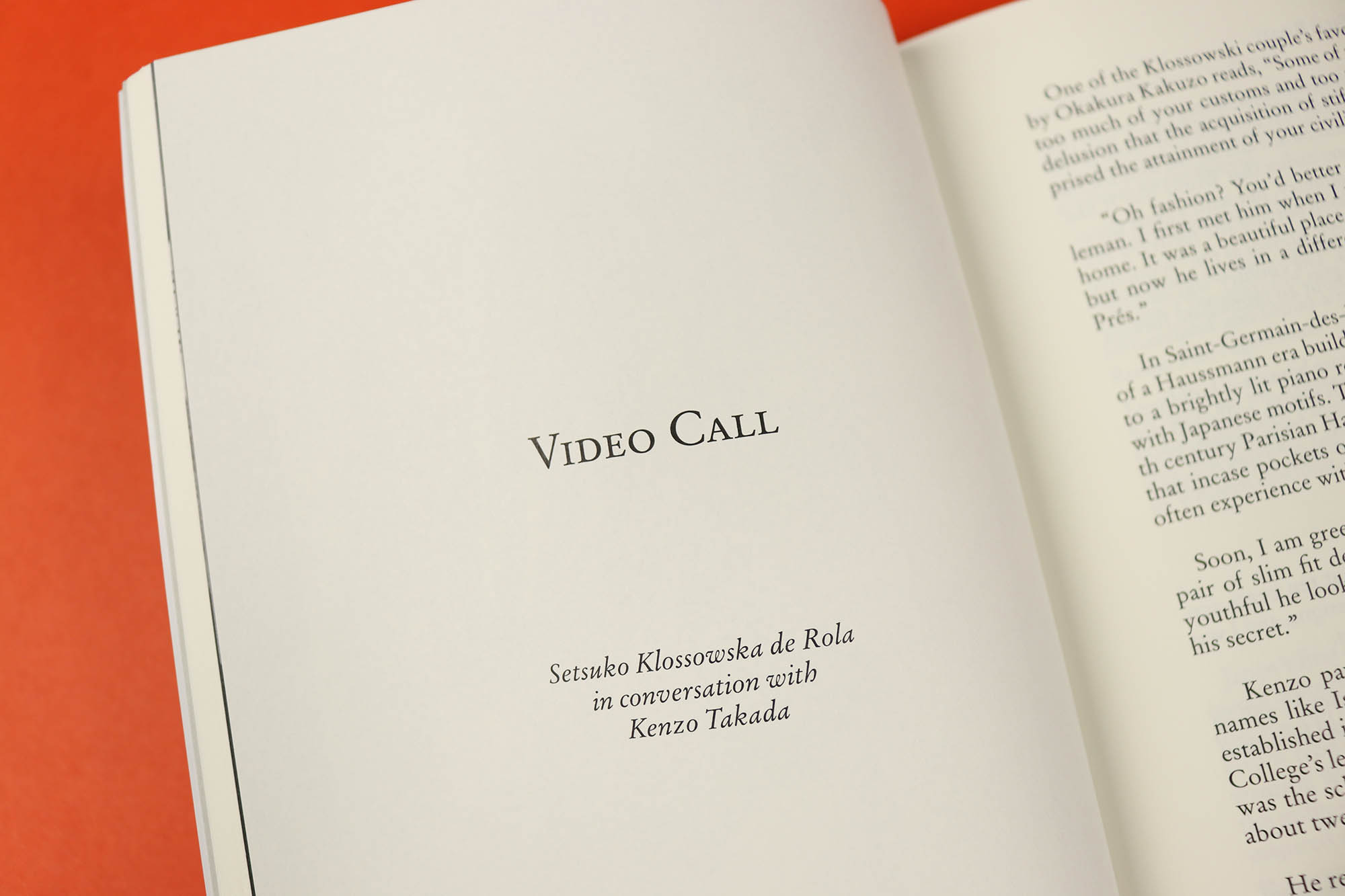 Video Call is a lovely, intimate conversation between Japanese-French artist Setsuko Klossowska de Rola and Japanese designer Kenzo Takada. Interviewer Jae Lee sets the scene, describing the room and the bustle of setting up the call, and then disappears entirely, leaving the reader sitting in on a conversation that sweeps across subjects including the industrialisation and westernisation of Japan in the late 19th and early 20th centuries, and the beauty of the kimono: “Wearing a kimono is like painting. The way you build up the composition is very similar.”