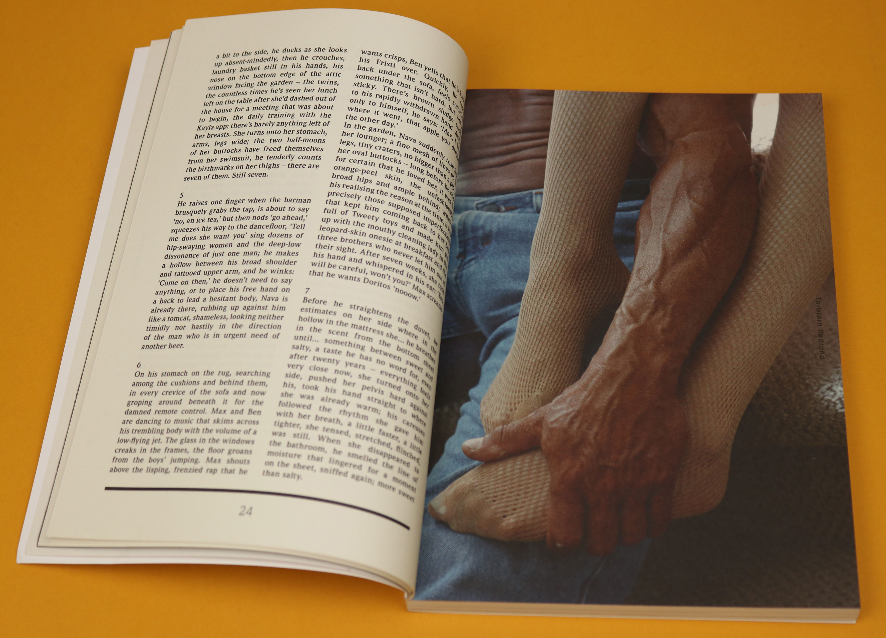 Small-ish and white, Extra Extra’s design is somewhere between a book and a magazine, which gives the reader the pleasurable feeling of opening something texturally rich, and rewarding. This is one of those rare magazines where the visuals and the text are equally stunning (usually, in the magazine world, it’s the visuals that do a lot of the heavy lifting). In this issue, images are lush and almost uncomfortably textural. One photograph, by Torbjørn Rødland, shows a veined arm gripping a fishnet-clad leg. Later in the same story, we see a pencil case full of sand. It is difficult to tell whether what you feel looking at these images. Are you disgusted? Or are you turned on?