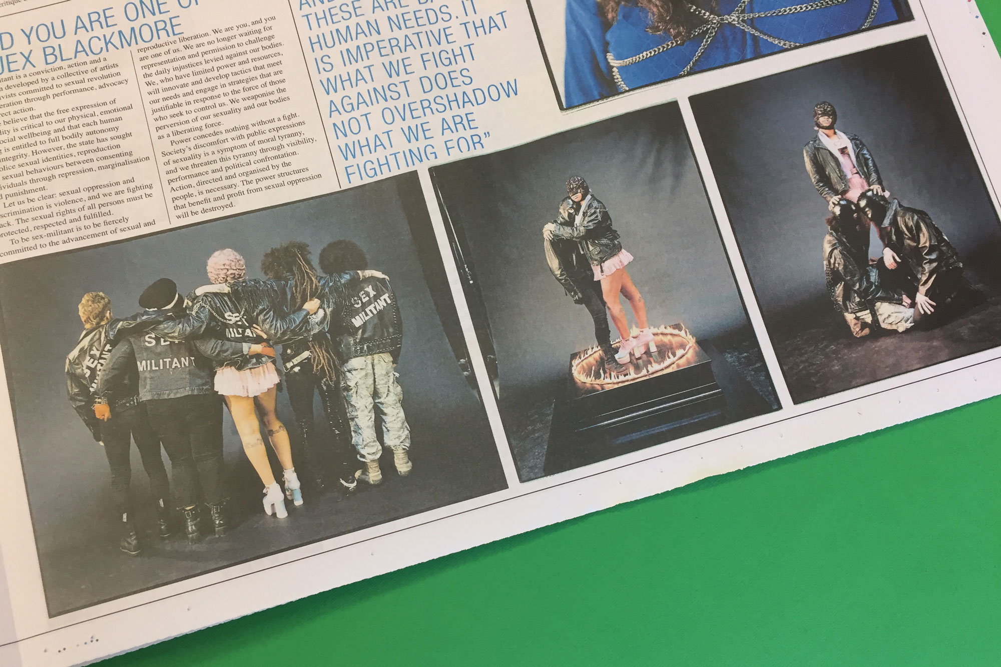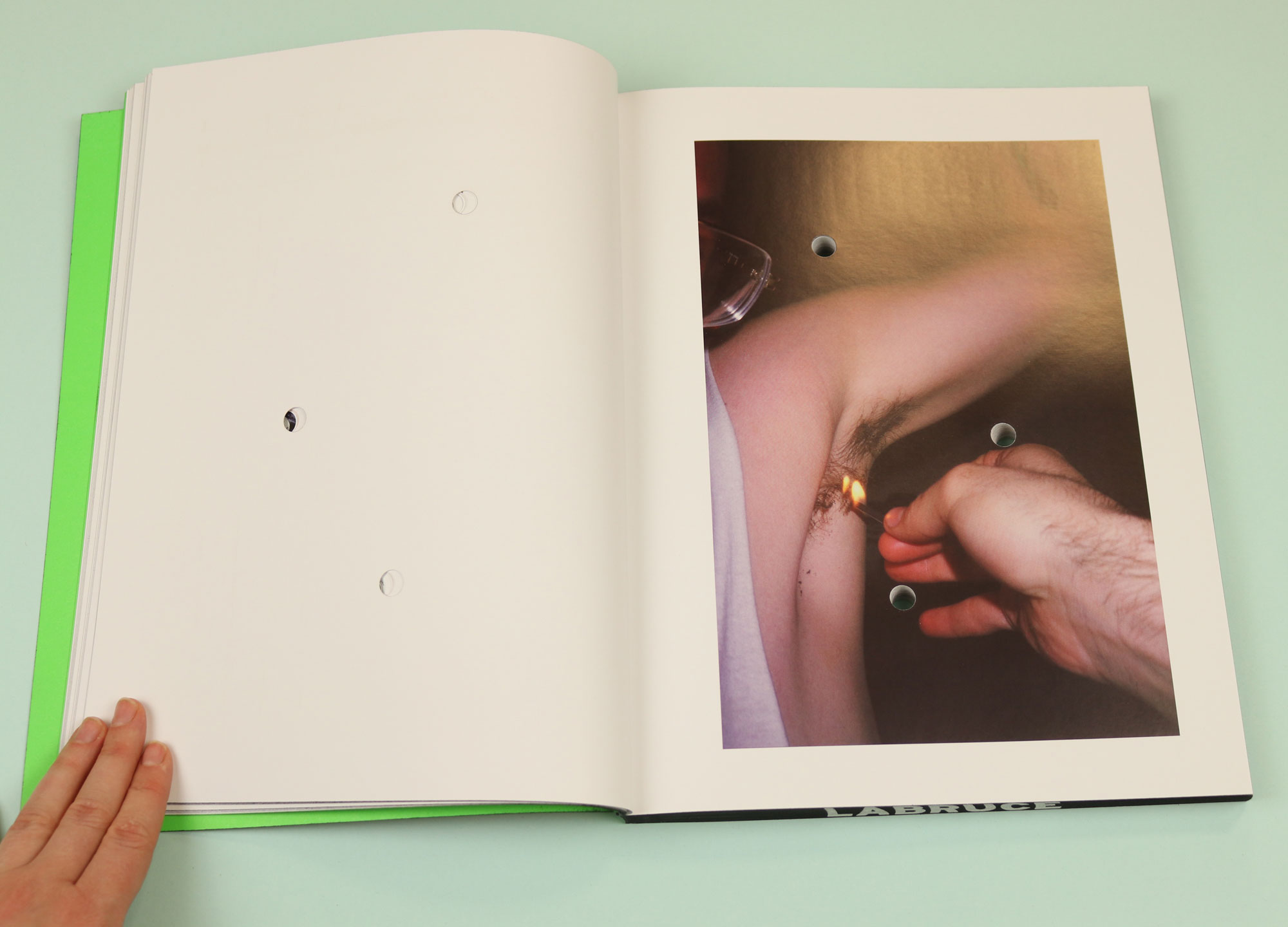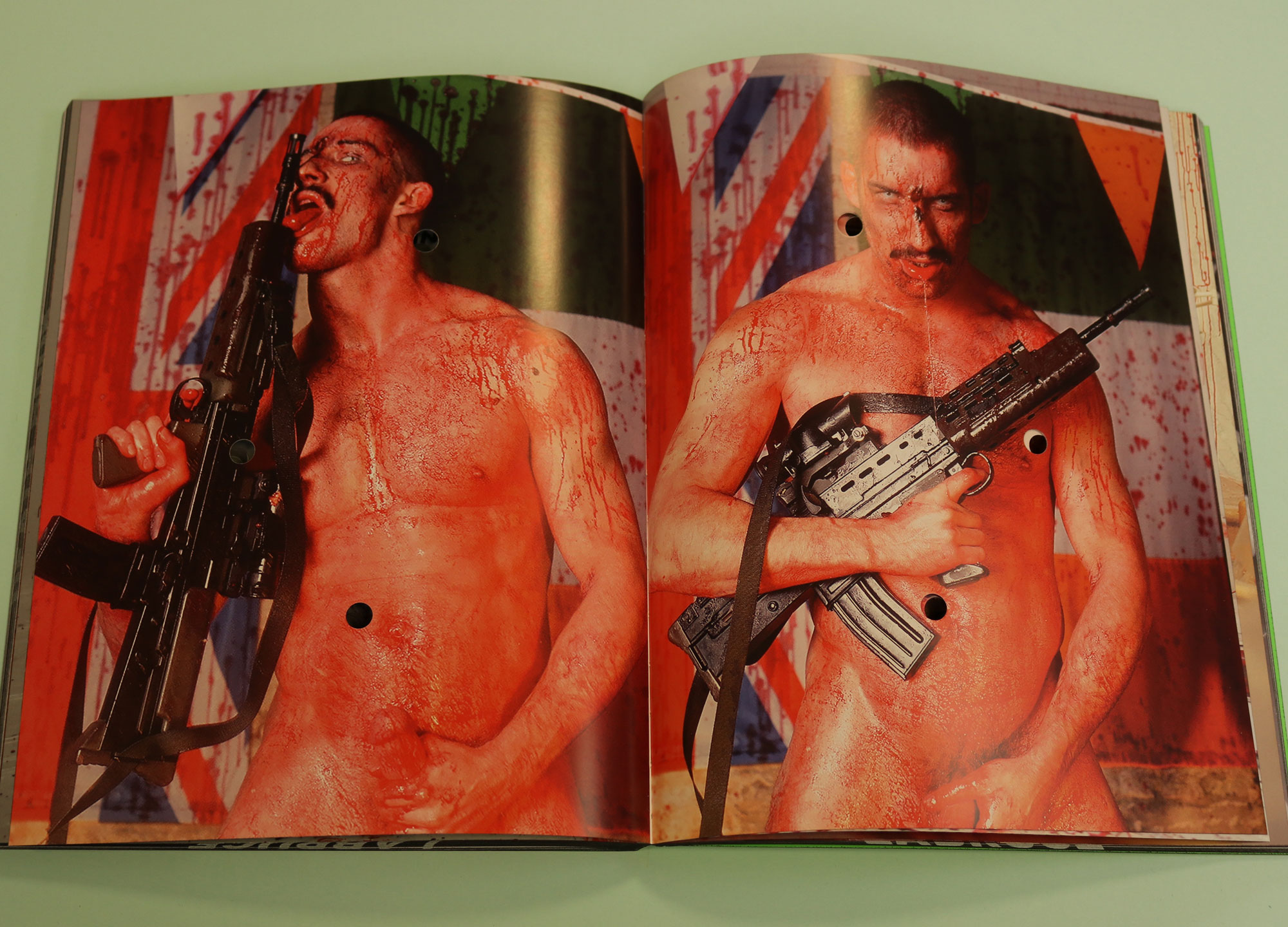 Sex magazine Baron’s latest ‘Death Book’ — part of an ongoing series investigating the erotics of mortality — is riddled with bullet holes. Previous issues similarly draw attention to their existence as physical objects; the first death book came in a jet-black protective box, and Harley Weir’s special issue had a baby’s eye printed on the cover (the effect feels, counterintuitively, explicit). Part of Baron’s experimentation with the printed object is about size: issues are bigger than the average magazine, and much thicker. This makes the Bruce LaBruce issue particularly unsettling: many of the images inside show models spattered with blood.