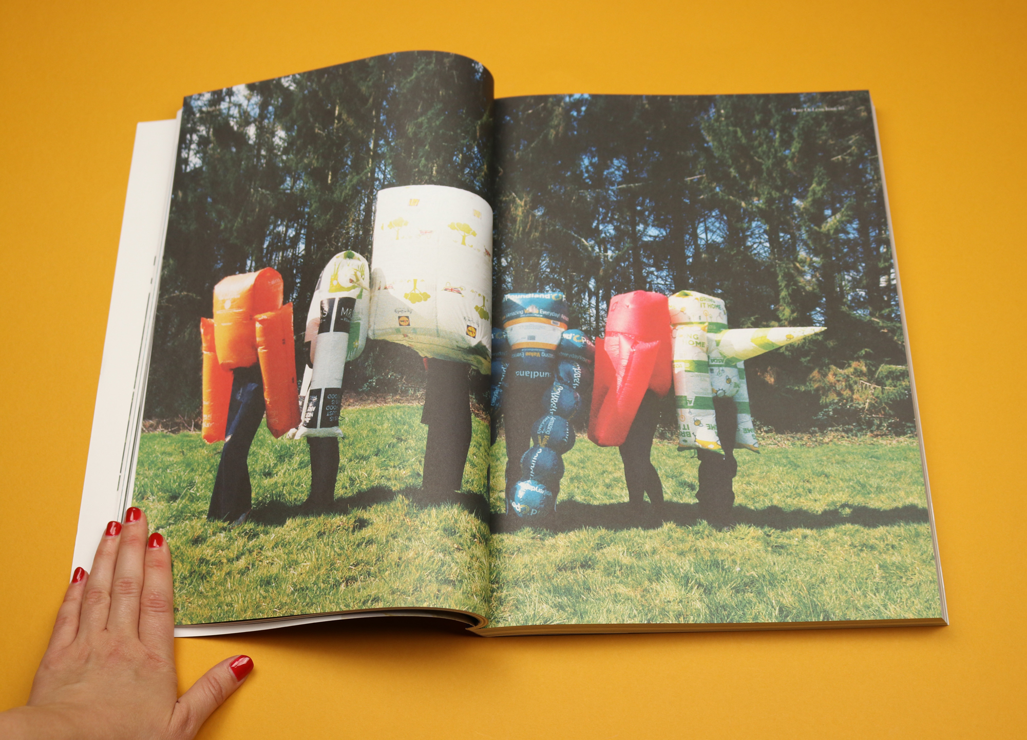 There are less inspiring moments in this magazine. Interviews tend to be basic Q&As, and the writing is pretty patchy, but some of the fashion — like that painted Gucci thong — is superb. Another highlight is a shoot with San Kim, a designer who responded to the early days of the pandemic by creating full body armour, made out of old Tesco shopping bags.