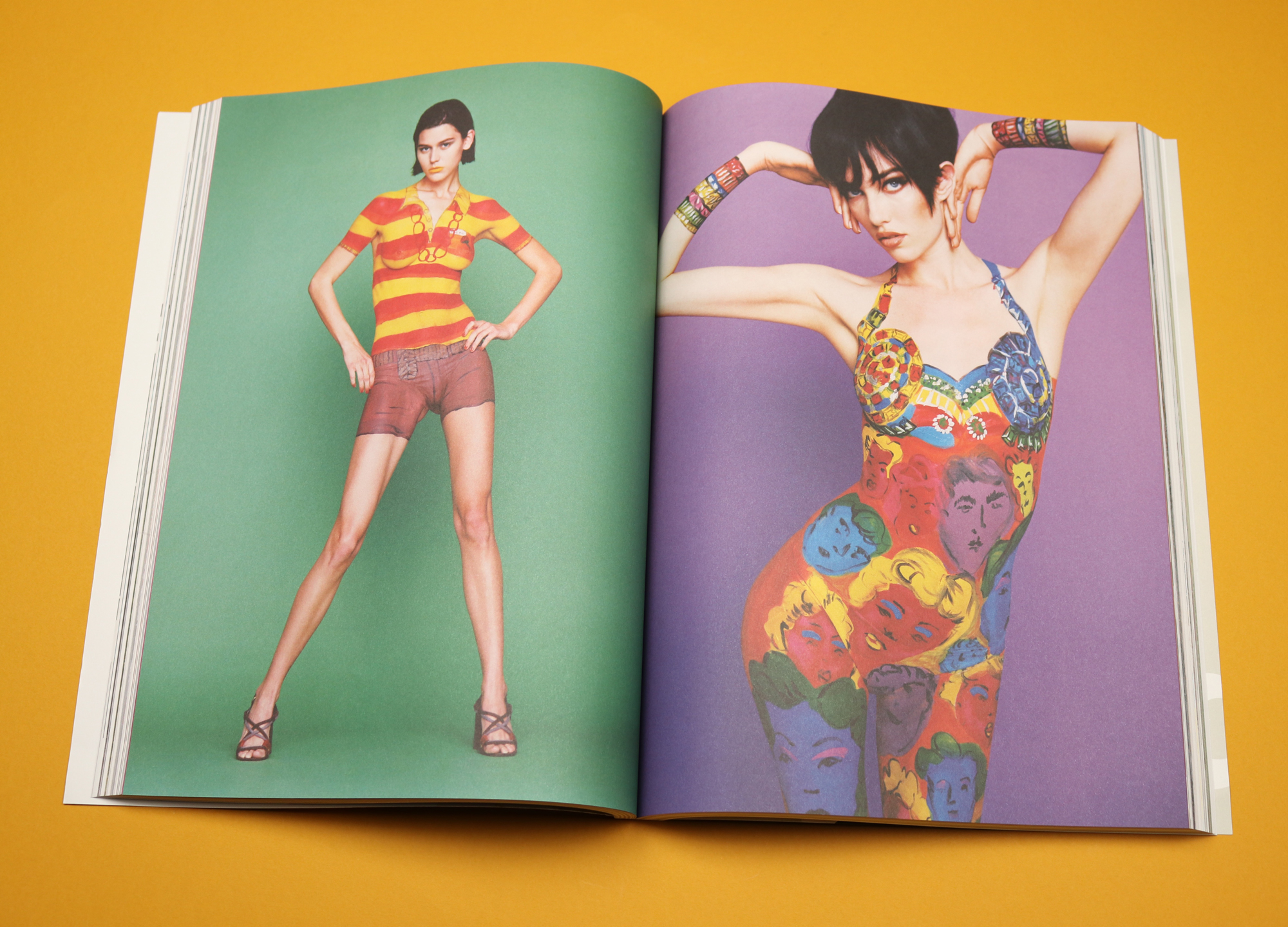 The photograph is from a shoot called ‘paint by numbers’, which sees “fake fashion” label Kezako Paris emulate famous catwalk by transforming the naked body into a literal canvas. The images are fabulous; in my favourite, an iconic Marilyn Monroe-print Versace dress is reimagined. There’s also an outrageous shot of a Gucci thong.