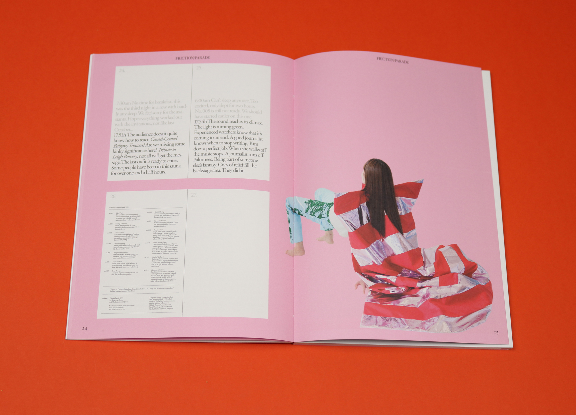Monument plays with time in similar ways. Berkulin has styled the clothes in the accompanying fashion shoots, making outfits that haven’t seen the light of day for 20 years feel startlingly new, and the Keuper/van Bentm story is told as though it’s happening in the present (eg. “Michiel decides to quit his production job”). This has the interesting effect of plunging the reader back into 1997.