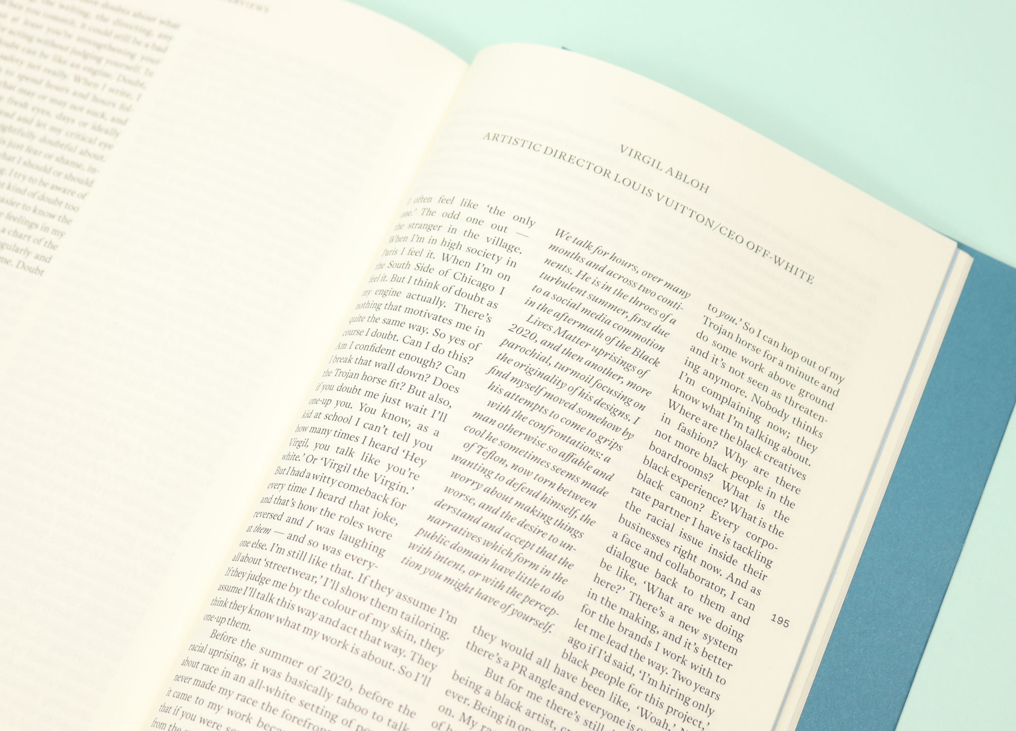 Abloh is prickly and earnest and vulnerable; it’s one of the most vivid interviews I’ve ever read, and typical of a magazine like Vestoj, a jewel in the crown of the independent magazine world.