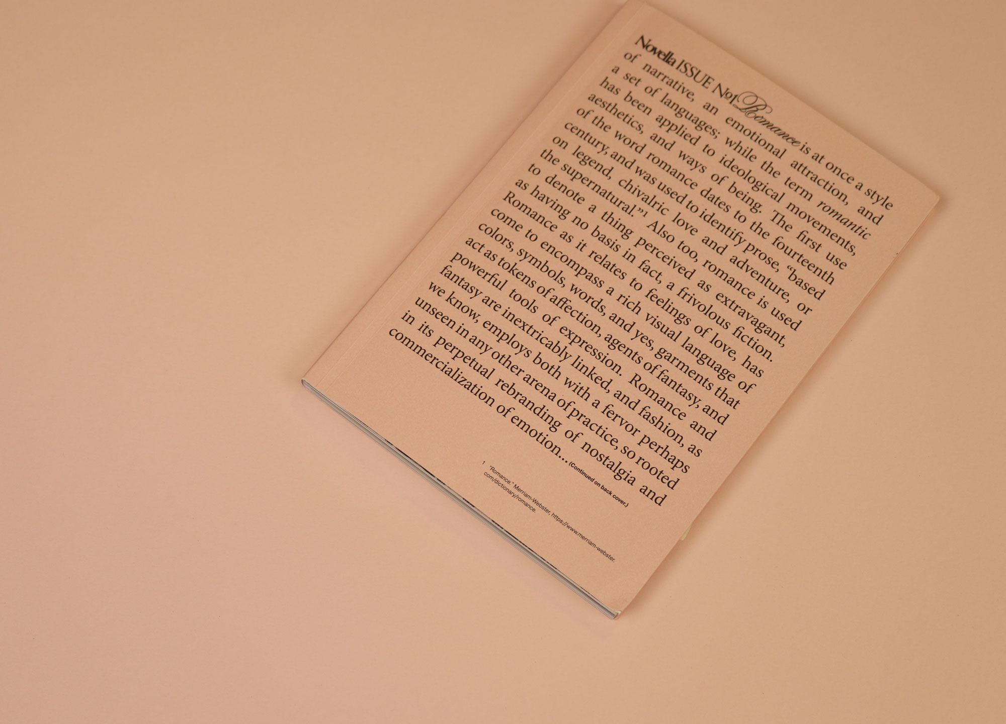 Novella is a magazine that places fashion in unusual contexts. In this first issue, which is small and deliciously pink, contributors reflect on the material world as it relates to romance. “Romance and fantasy are inextricably linked,” editor Abigail Buzbee writes in her opening letter — which doubles as Novella’s front cover — “and fashion, as we know, employs both with a fervour… rooted in its perpetual rebranding of nostalgia and commercialisation of emotion”.