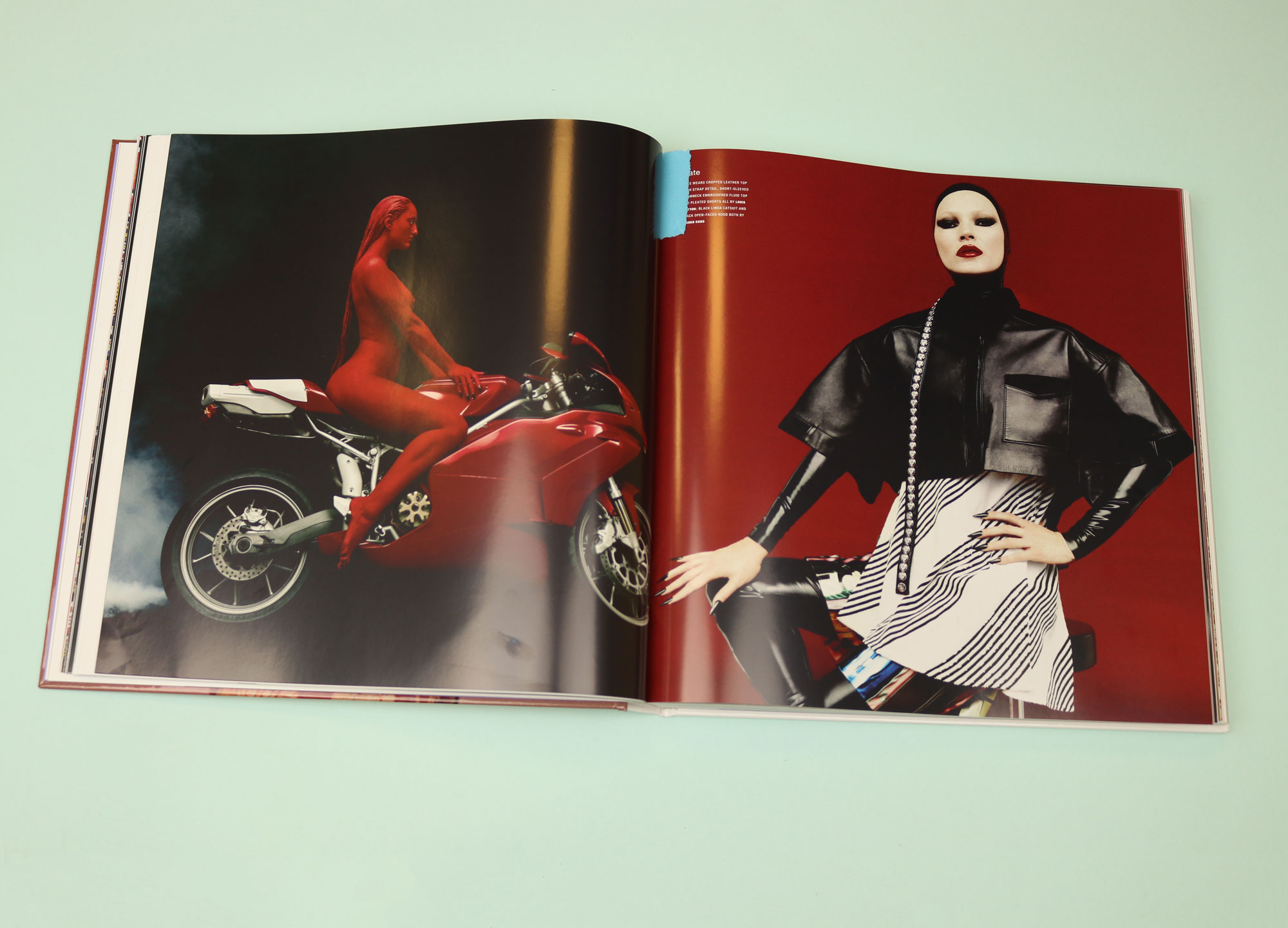 Where Perfect does realise its editorial intentions — to elevate the magazine from disposable paper commodity to something grander — is in its fashion shoots, which are luxuriously long and textural. In one 58-page feature shoot, entitled ‘Wow wow wow’, there are pages that are so fabulous, looking at them actually makes me sweat. In one spread, we see Kate Moss wearing spiked black nails and latex hood. In another, we see a woman’s body coloured blood red, her pubic hair spray-painted a livid, smurf-like blue.