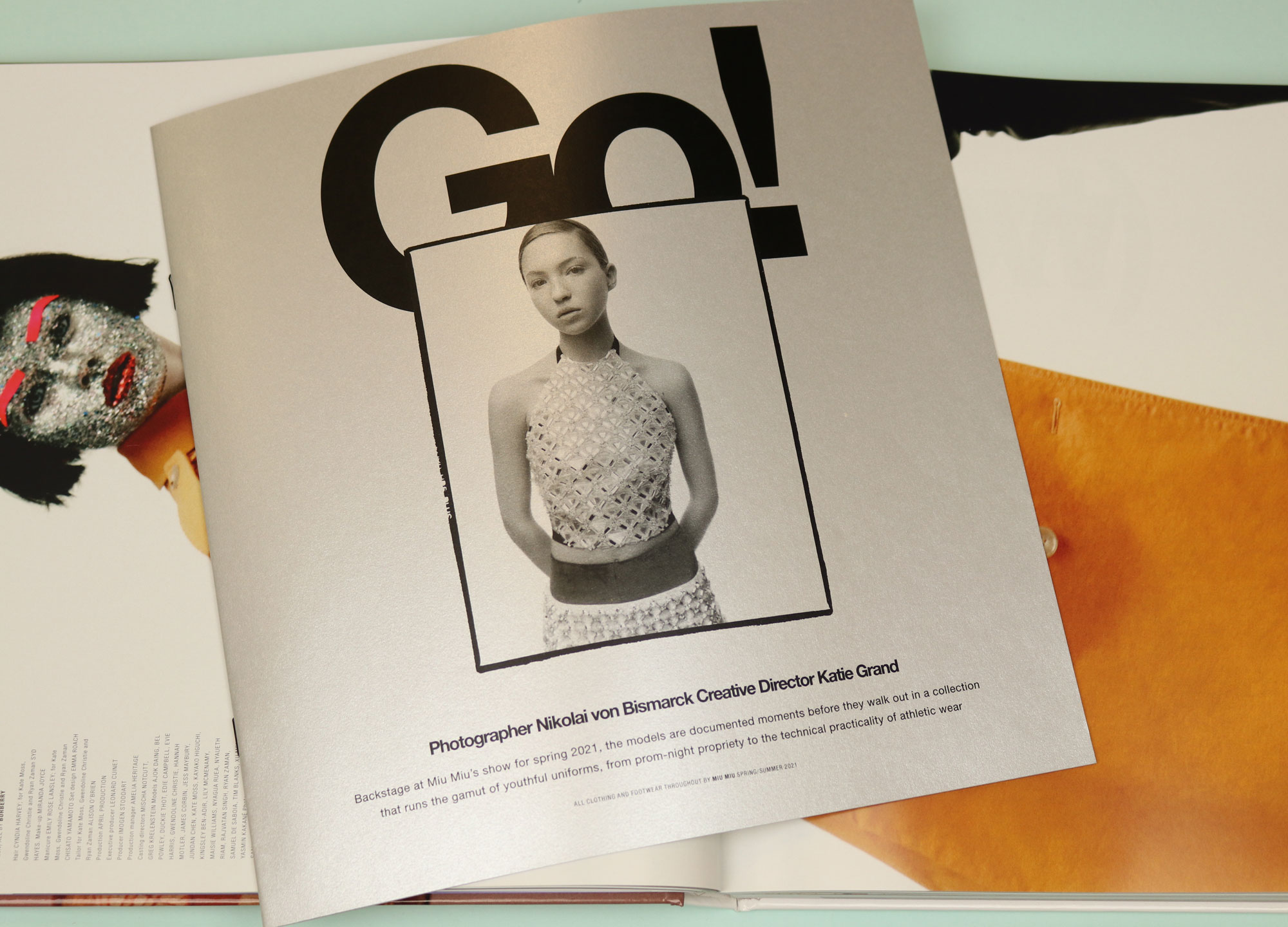 More a coffee table book than a magazine, the heft and the bulk of this thing is deeply satisfying, and there are lovely extras. Like a Gucci vinyl slipped into a pouch on one page, and a silver pamphlet about Miu Miu models, that fashion obsessives will note is shot by Nikolai von Bismark (Kate Moss’s boyfriend) and starring Lila Grace Moss Hack (Kate Moss’s daughter). This is the magazine to tuck into when you are starved of glamour. When you are looking to delight your senses, but you don’t necessarily want to actually read.