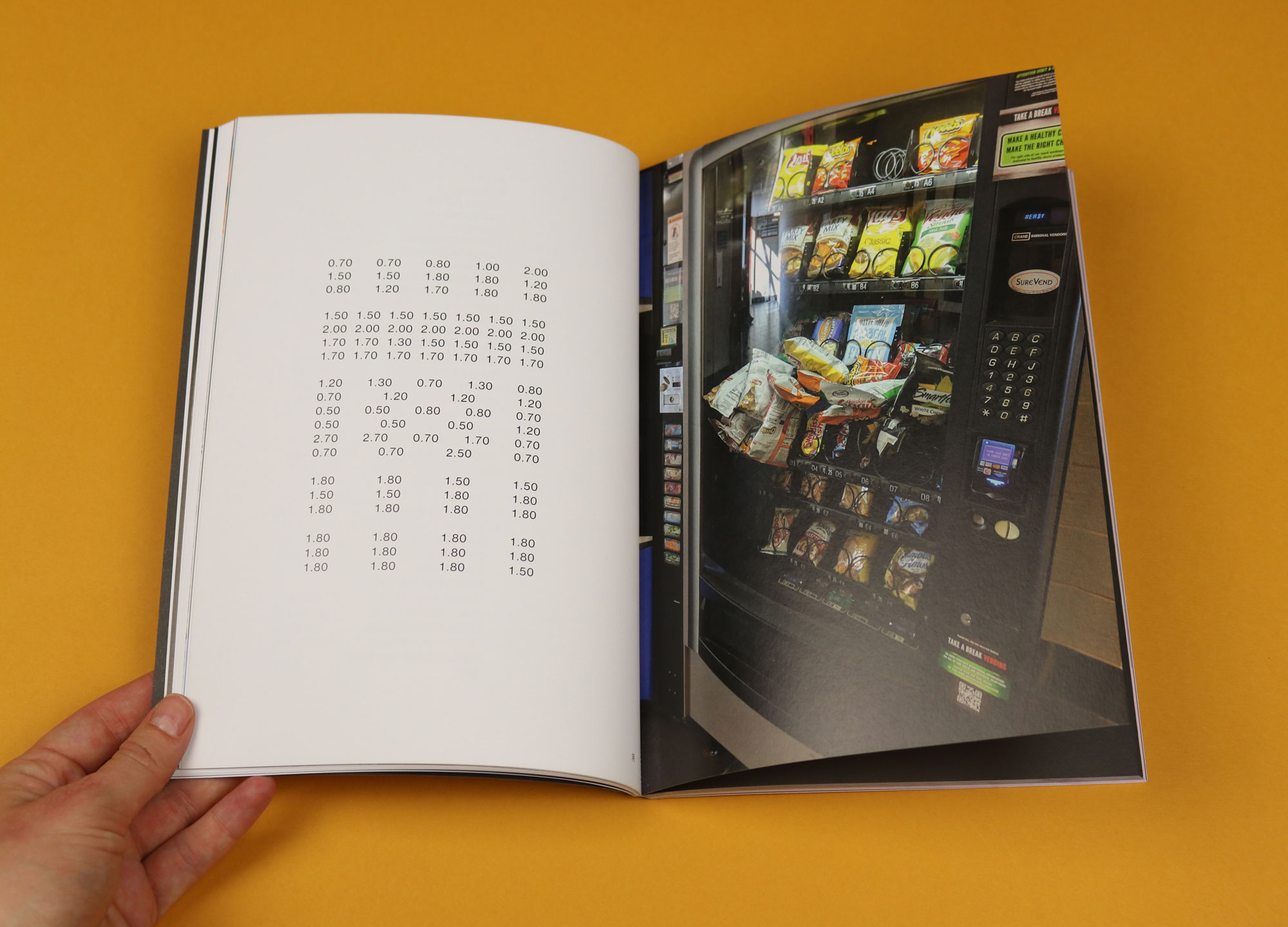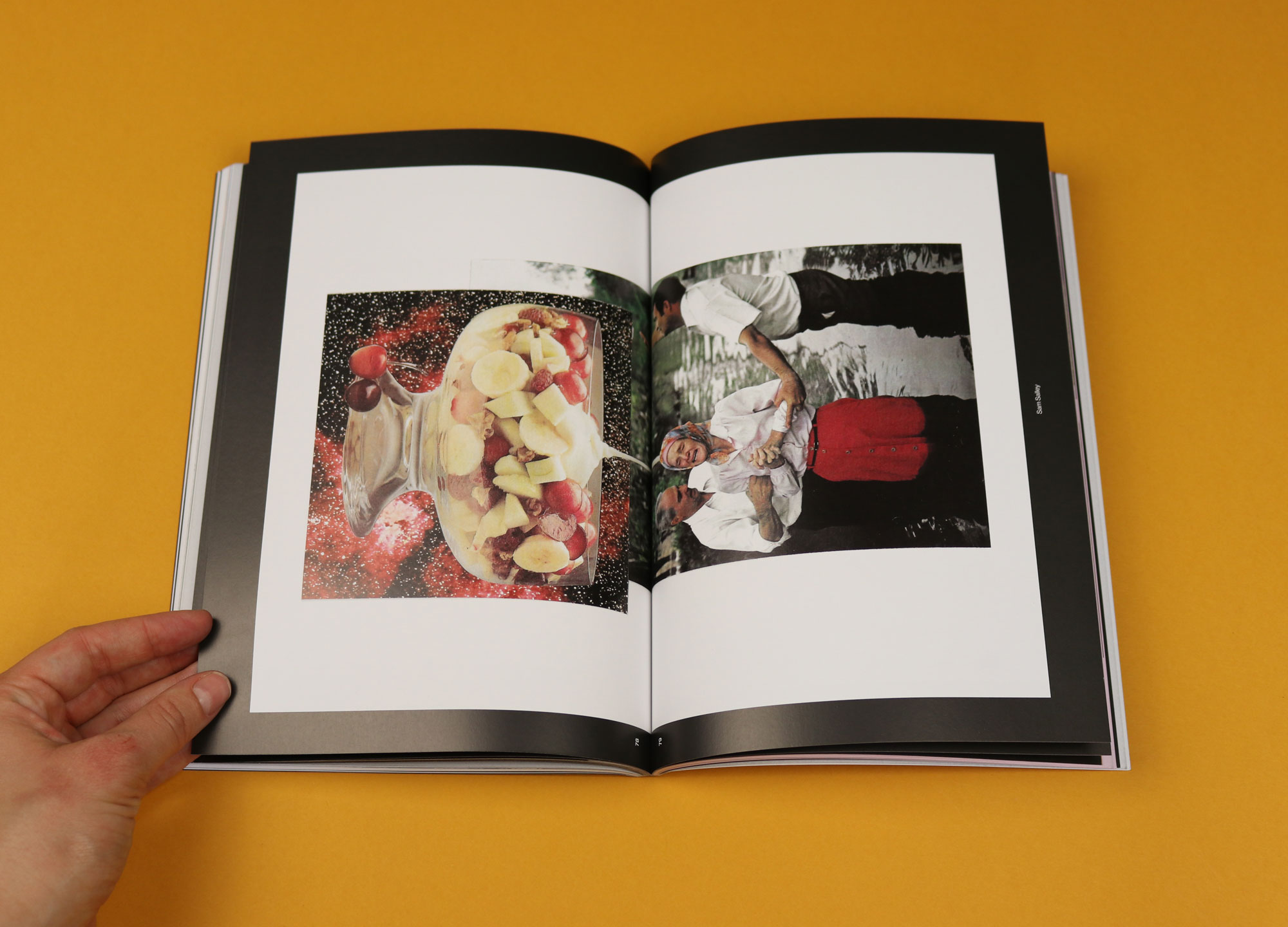 Many of my favourite images are darkly funny. In one collage, by Sam Salley, we see an upturned fruit salad superimposed above a grieving woman’s head. In another, we see crisps suspended in mid-air in a vending machine, unable to fall out of the flap. Food & Gravity invites you into a culinary world where you don’t know what’s up and what’s down. It’s a delight.