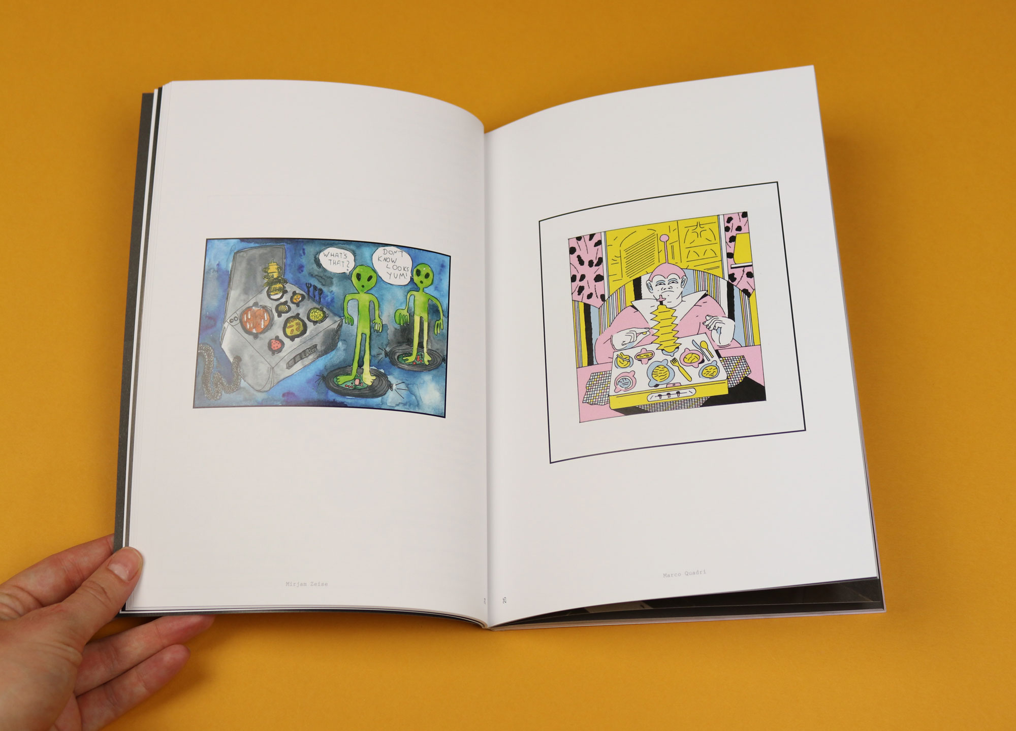 Food & Gravity is the sixth in a series called ‘Food &’, a magazine that approaches food through extremely unconventional themes. A welcome counterpoint to the mainstream food supplement, some of the best of the magazine’s previous issues have been ‘Food & Nuclear War’ and ‘Food & Love’. Every time, the fun of the conceit is that it invites you to look again at something as fundamental and habitual as feeding yourself, and see it entirely anew. Many pages of Food & Gravity, for example, are devoted to pictures of aliens trying to get to grips with the concept of eating.
