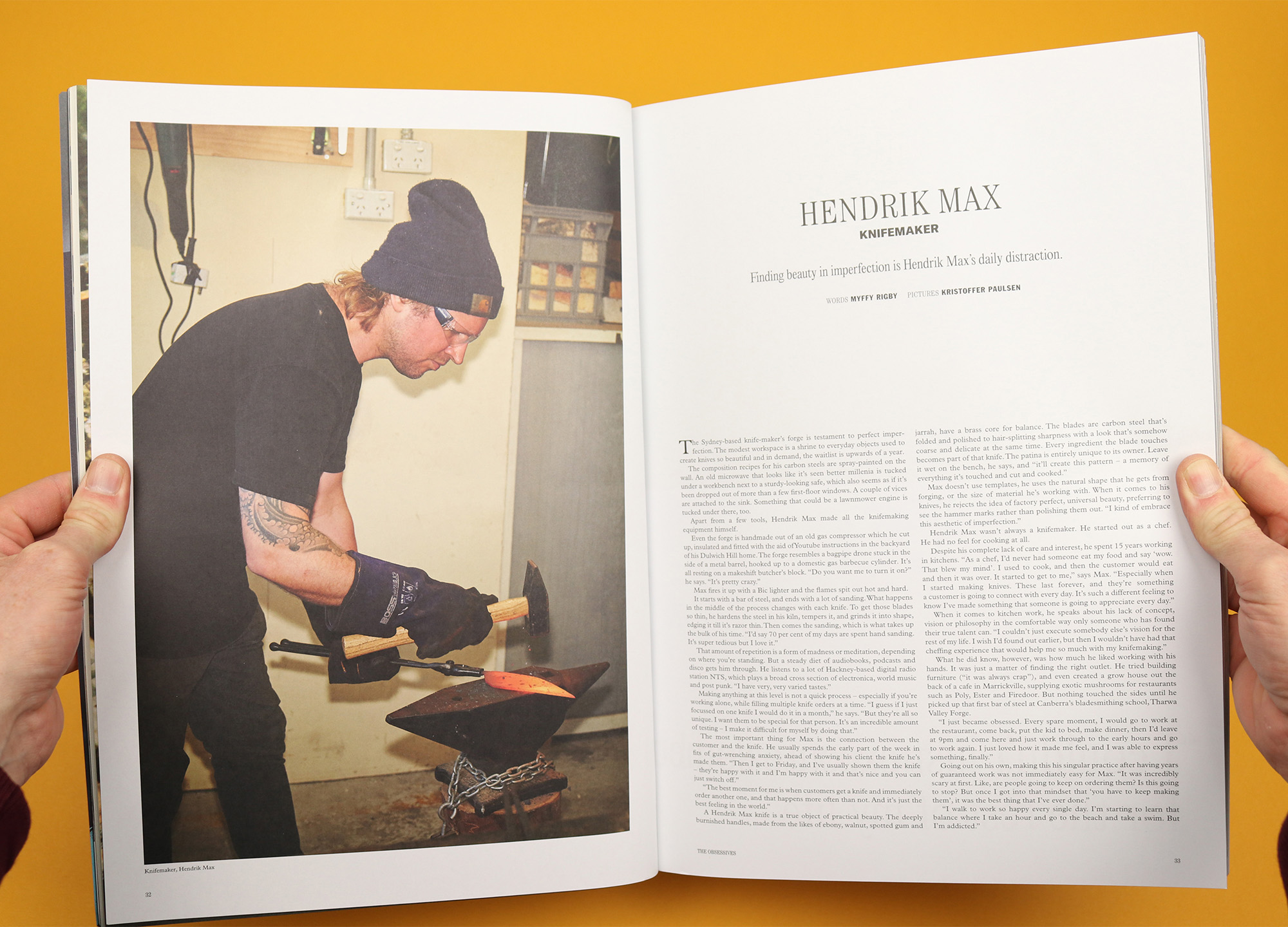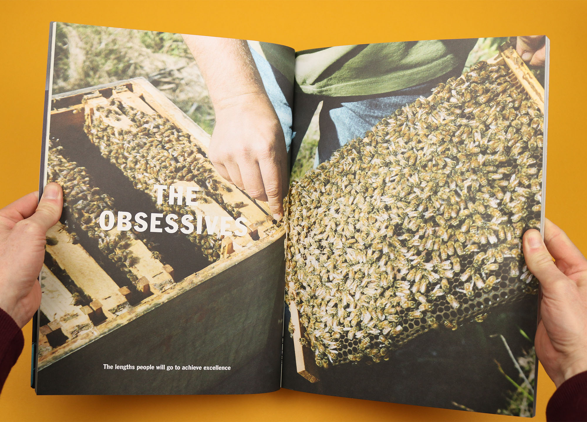 Food and drink run through the magazine, but there’s something else thrumming away beneath the surface and it’s significant that an early section presents a series of individuals called The Obsessives. There’s a chef and an artist, but also a knifemaker, a bee charmer and a “sex clown”, all of them united by the strapline, “The lengths people will go to achieve excellence”.