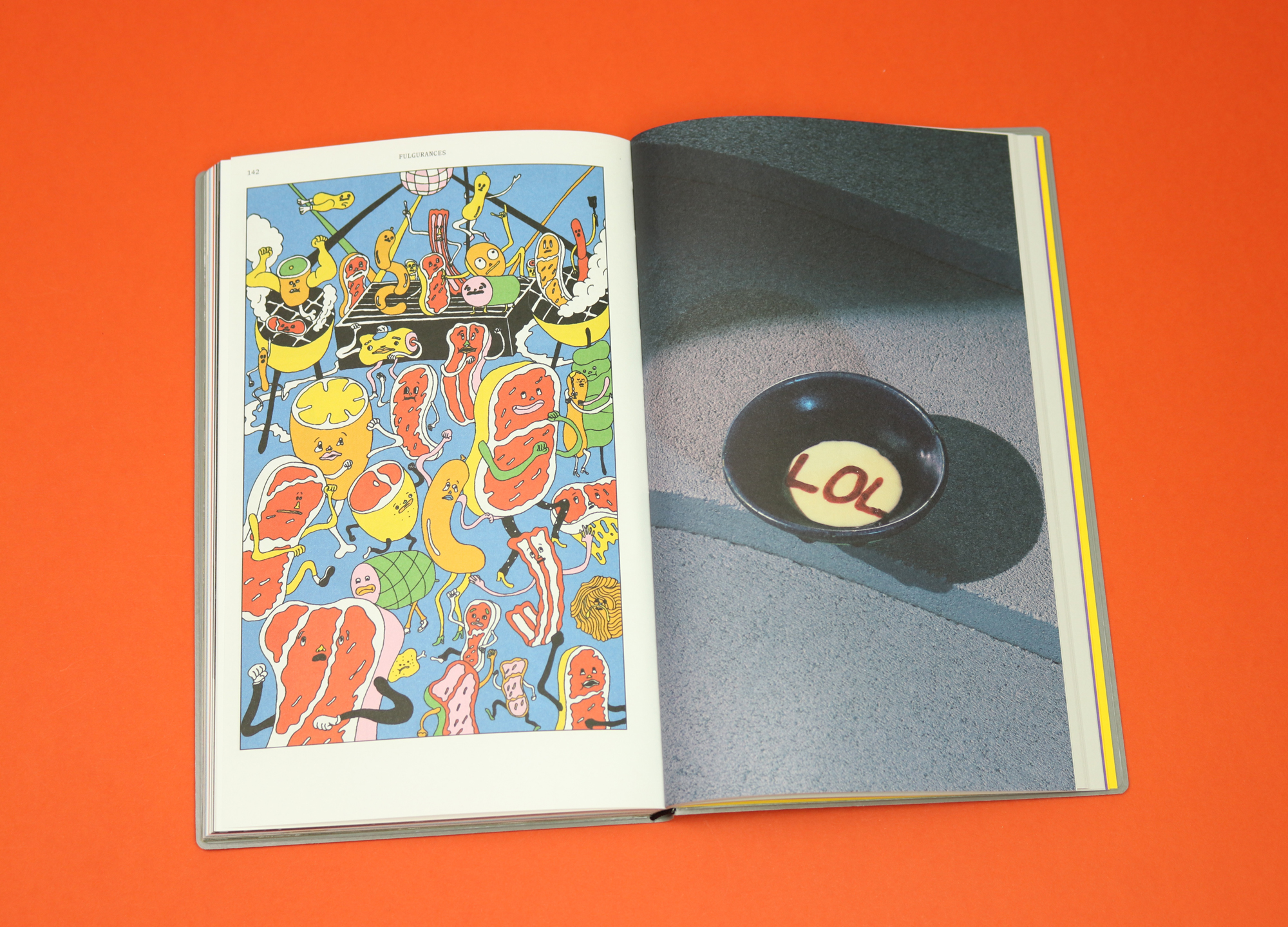 But there are also lots of lighter moments in this magazine. Like a full-page picture of a pudding that says ‘LOL’ on it. And a surreal comic strip about a person so obsessed with the smell of meat that she chases a slice of beef through a vortex into another world.
