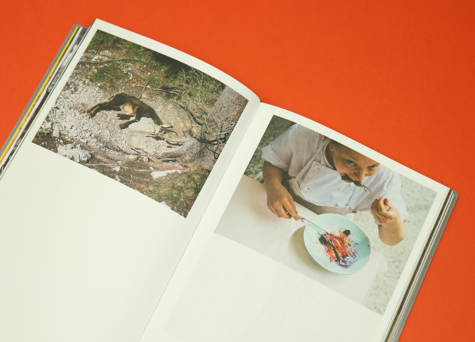 Taglined ‘The Almanac of contemporary cuisine’, Fulgurances has a deliciously thick plastic cover which creates the feeling that you are reading something very stylish and upscale, more like a book than a magazine. A particularly arresting feature is a series of photographs taken in Slovenia, following the chef and forager Ana Roš. In one double spread we see two images: the first of a dead deer; the second of a woman greedily scraping her plate. What the woman is eating is red, like the deer’s blood. It’s an unsettling juxtaposition.