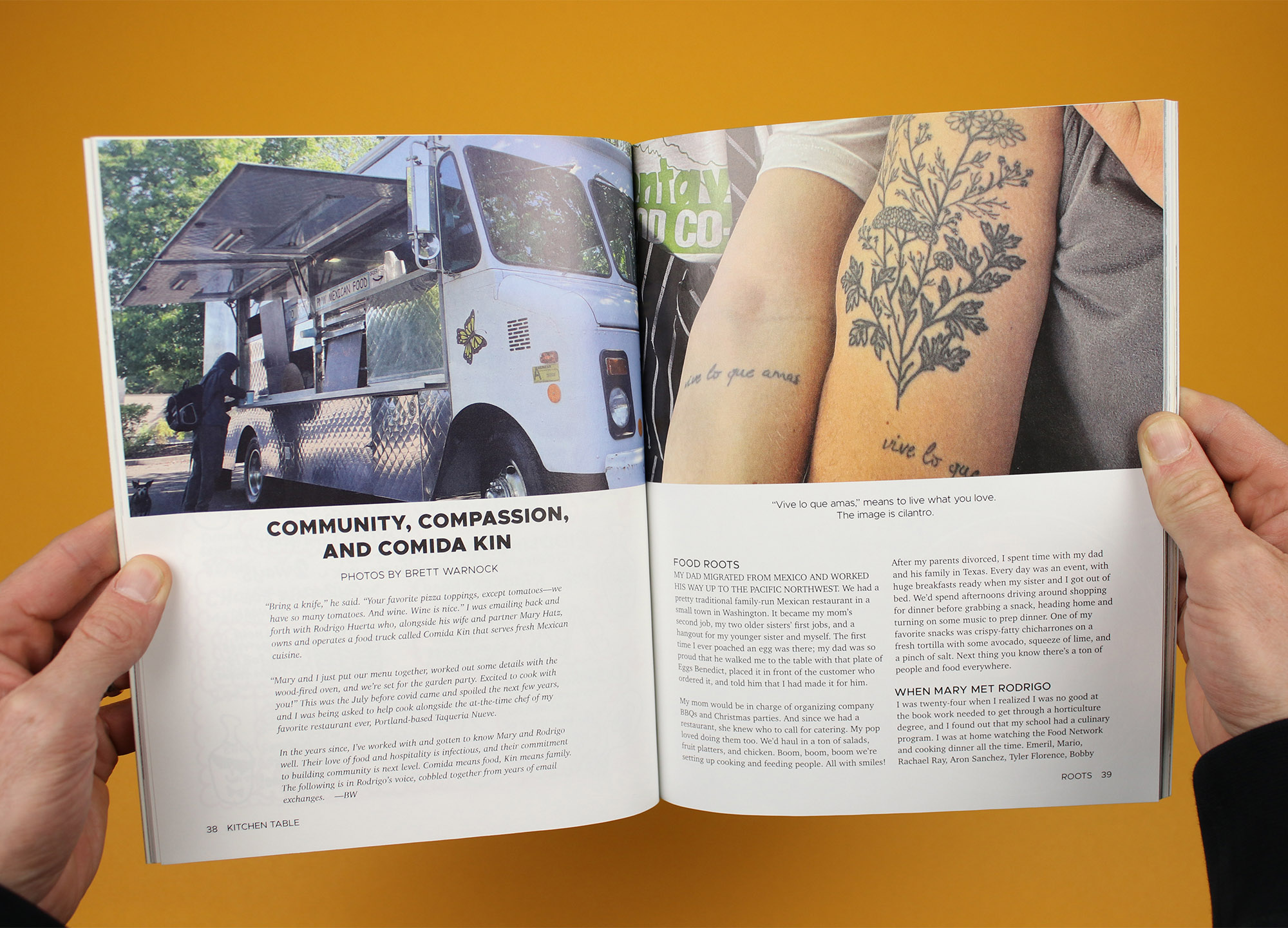 Reflecting cutting-edge food culture across the US and beyond, Kitchen Table is all about the people, ingredients, traditions and innovations that are shaping the way people eat. The fifth issue is the first one I’ve seen, but its theme of ‘Roots’ seems to fit the magazine perfectly, allowing it to dig deep into personal and culinary histories, like the story of Rodrigo Huerta and Mary Hatz, who serve fresh Mexican food from their truck Comida Kin. The article details how the two of them met; how they moved together to Portland and started cooking together; how they bought their truck in 2019; and how they’re now using it to help foster community across Washington County. It’s just one story of many in the magazine that emphasises the importance of the relationships that grow up around food, and the many ways in which producing, cooking and eating food is about much more than physical sustenance.