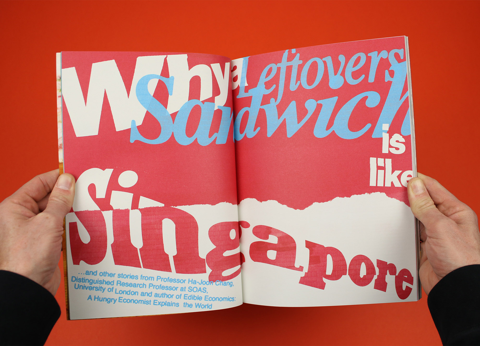 A magazine dedicated to the art of putting tasty things between slices of bread, each issue of Sandwich takes a theme that allows it to expand beyond lunchtime basics. The latest issue is themed ‘Leftovers’, and it was perfectly timed to come out in time for Christmas last year, featuring chef and food writer Gizzi Erskine photographed on the cover with her “Muffuletta-style” sandwich. An entire loaf of bread hollowed out and filled with gorgeous-looking Christmas dinner leftovers, it’s a towering, oozing, slab of a sandwich that looks as delicious as it is impossible to eat. Elsewhere in the issue the theme is broadened out to include economist Ha-Joon Chang explaining why Singapore is the economic equivalent of a leftovers sandwich; chef Tom Kerridge picking his football team of Christmas leftovers; and photographer Matt Hass reporting from London’s massive Padworth IVC waste food processing plant. (The smell was apparently so bad, and so persistent, that he had to shave off his moustache afterwards.)
