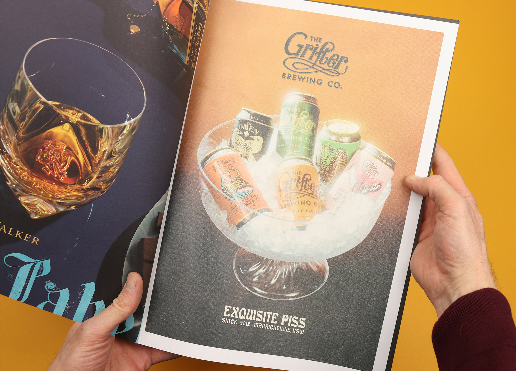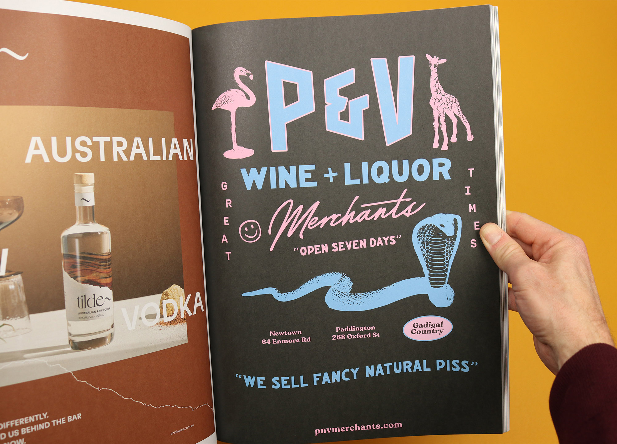 This big, beautiful magazine from Sydney landed on my desk at the start of the year, and when I first wrote about it for the Stack blog I focused on the sense of fun that jumps off its pages. It reads like it was created by a bunch of friends who had an amazing time making it, and I totally want to be the sort of person who would hang out with them in one of their bars or restaurants. (I am aware that’s probably not my life, but that just makes the vicarious taste of it all the more intoxicating.) Take a look at that previous post to see some of Swill’s sample editorial pages, because for this short mention I want to focus on its adverts. I don’t think I’ve ever written about liking a magazine’s adverts before, but the group of brands that Swill has gathered around this first issue do a brilliant job of accentuating that feeling of being part of the club. I’ve never heard of most of them before, but I genuinely want to try The Grifter Brewing Co’s ‘Exquisite Piss’, or drop into P&V Wine + Liquor. Swill is selling a very specific Australian lifestyle, and I want a piece of it.