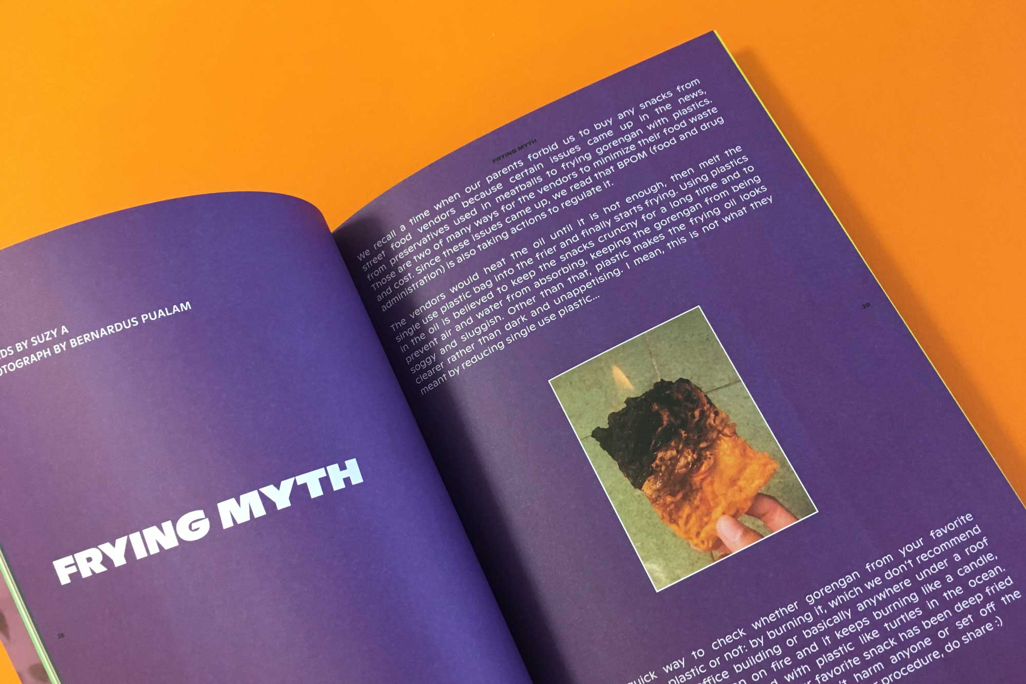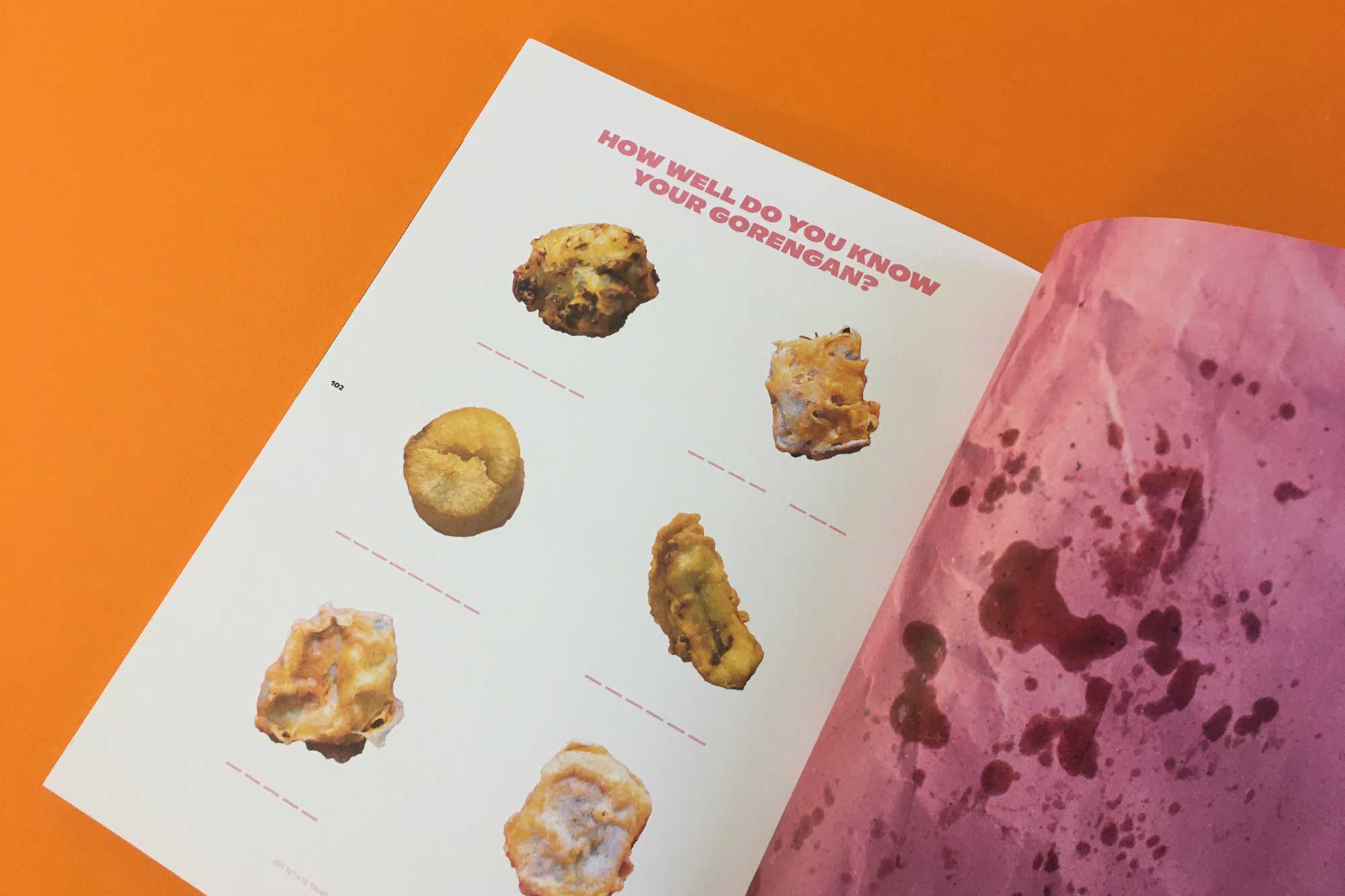 Made by an Indonesian culinary collective called Lazy Susan, Suzine’s second issue is entirely dedicated to fried food: gorengan, when something is deep fried in oil, or in Indonesian, goreng. The stories included are peculiar: one feature is about the nasty habit street food vendors in Jakarta have of melting a single use plastic bag into a pan of oil to prevent the fried tofu, sweet potato or tempeh they’re selling from going soggy. Apparently, the way to tell if you’re eating food fried in plastic is to try and set your gorengan on fire: if it keeps burning like a candle, you’re in trouble.