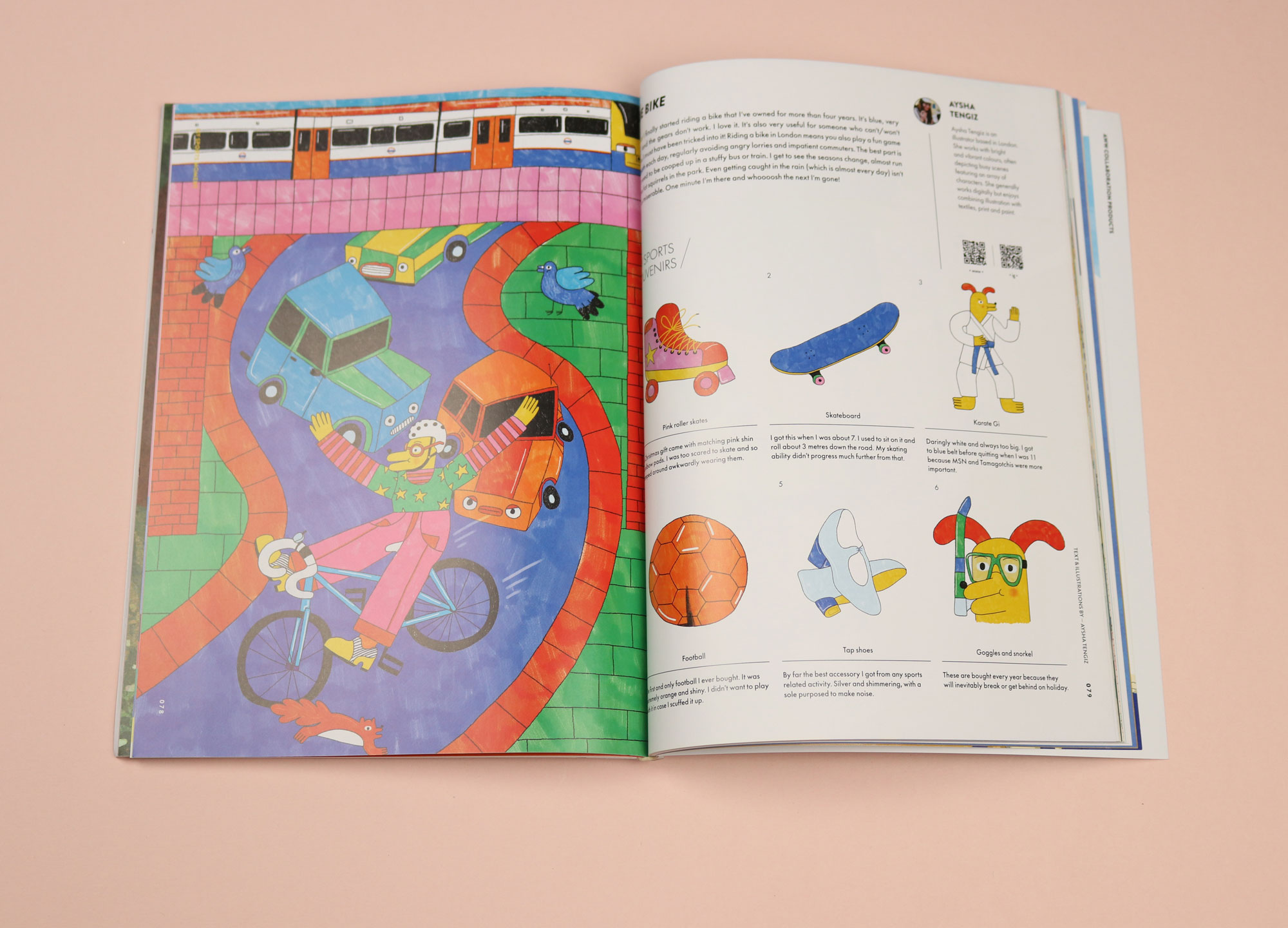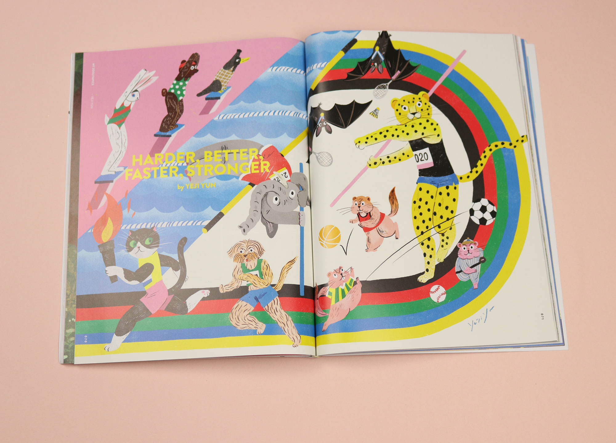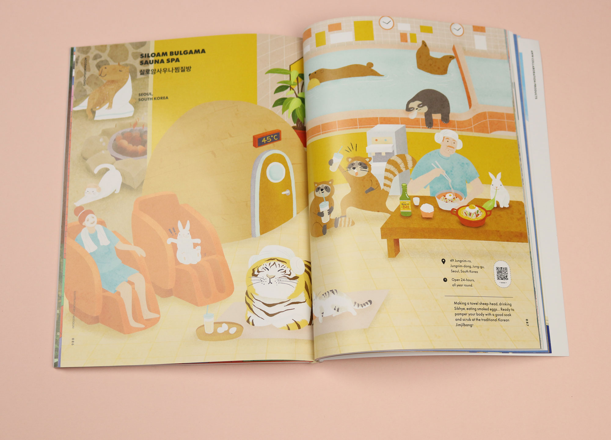 Named ‘Aww’ as in “Aww, isn’t that cute?”, this is an animal-themed illustration magazine. It’s made in Hong Kong, and intended to provide “illustration therapy” as a kind of escape from the country’s politics. The latest issue imagines a “zoolympics”, and features many strange drawings of teddy bears diving, and cats throwing javelins. Part of the fun of Aww is that it is slightly unhinged: one spread in here sketches out what would happen if movie characters — including Mia in Pulp Fiction and the twins in The Social Network — got haunted.