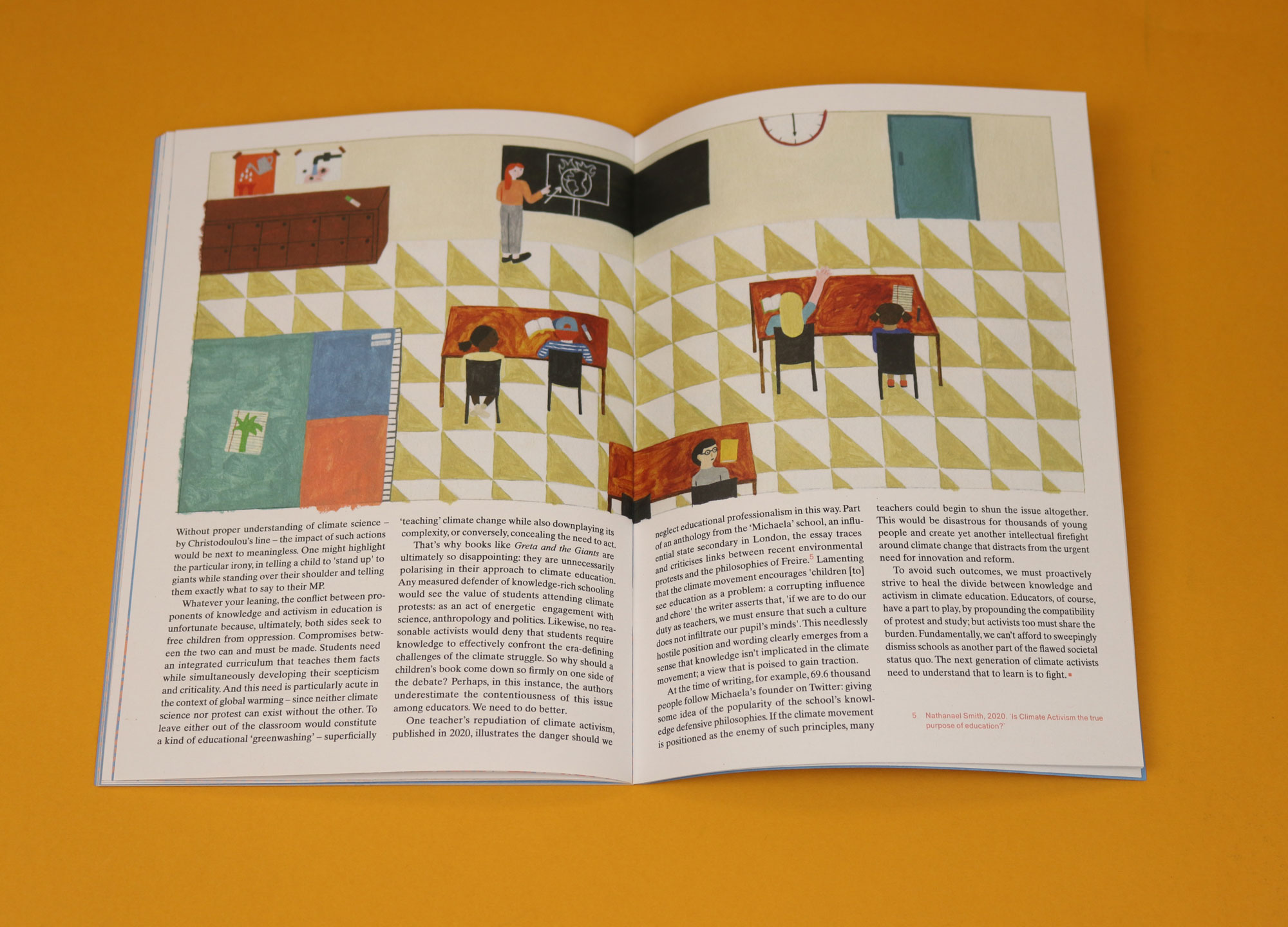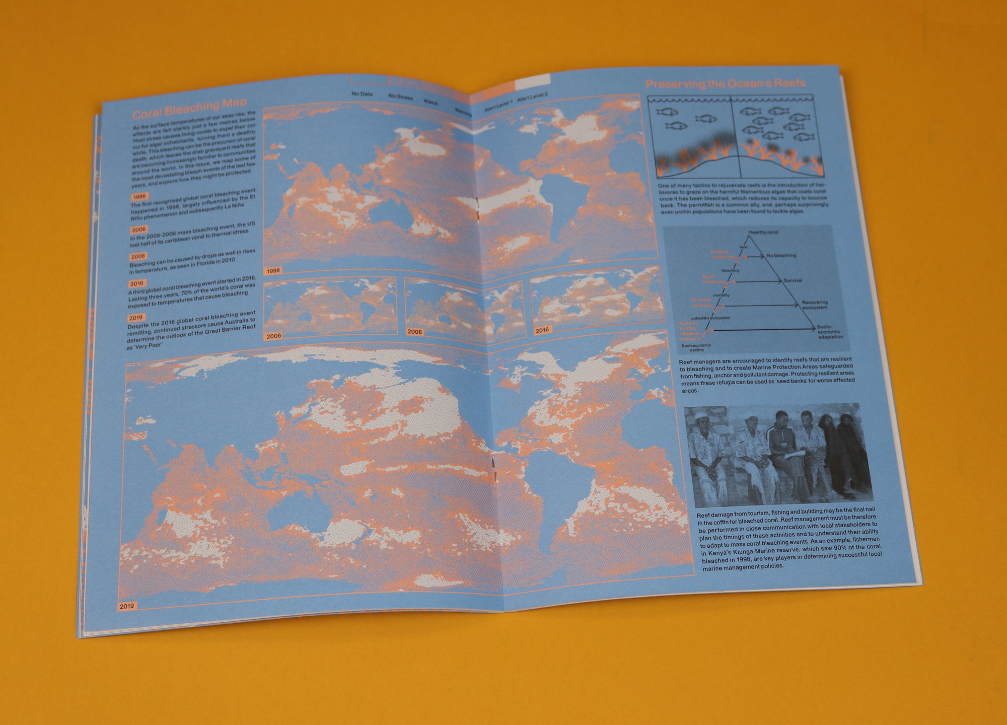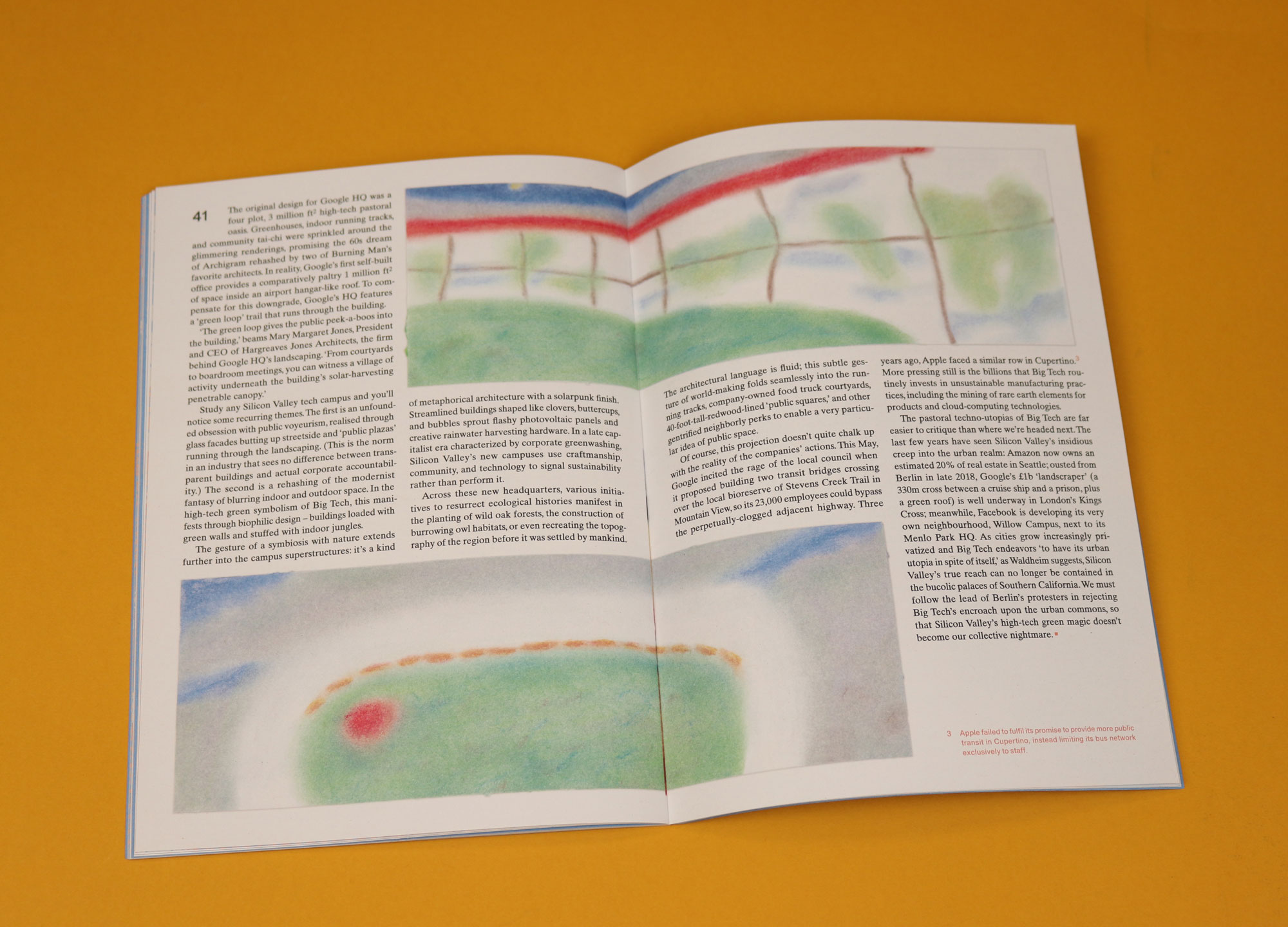 Made by a team of young scientists, lawyers and illustrators, It’s Freezing in LA! is a magazine about climate change. Spotted lines sliced through the third issue, a graphic representation of the numbers of people at the Global Climate Strike in March 2019. A central illustration in issue five plots the gentle recovery of the ozone layer, offering a much-needed glimmer of hope in dark times. The most recent issue is similarly imaginative. One highlight is a series of pastel coloured drawings by Laura Coutinho that provide a dreamy counterpoint to an article about Silicon Valley’s sustainability complex.