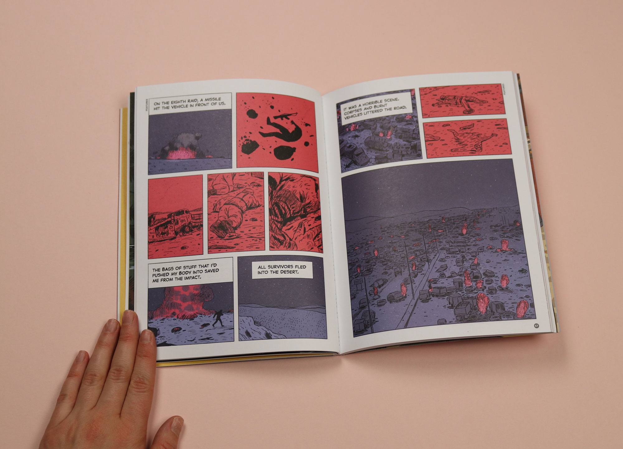 Created by Pulitzer Prize finalist Matt Bors, The Nib publishes satire, essays and memoir, all in comics form. The third issue, themed around ‘Empire’, includes one extraordinary piece by Hussein Adil, about the last two days of the Gulf War in Iraq. The simplicity of Adil’s drawings makes them painful to look at; corpses littered across the road are rudimentary line drawings washed with red. Part of what makes The Nib such a delight is its versatility. Other comics are brilliantly funny — issue five was themed ‘Animals’, and included one memorable strip about a pet cemetery. The most recent issue is themed ‘Pandemic’ and features a helpful guide: “How to Flee America in Ten Extremely Difficult Steps!”