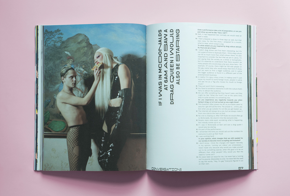 While researching for this issue, we found studies indicating that 72% of Poles are against same sex marriage, and more than 80% of people questioned in Hungary, Latvia and Lithuania are against same-sex adoption. Compared to the United Kingdom, where 73% say that they agree with same-sex adoption, it is safe to say that in most Eastern European countries there is still a heavy stigma applied to non-normative relationships. These traditional conservative values extend throughout the majority of society and apply to any who challenge ‘typical’ gender rules — which of course the drag queens of Eastern Europe do.”