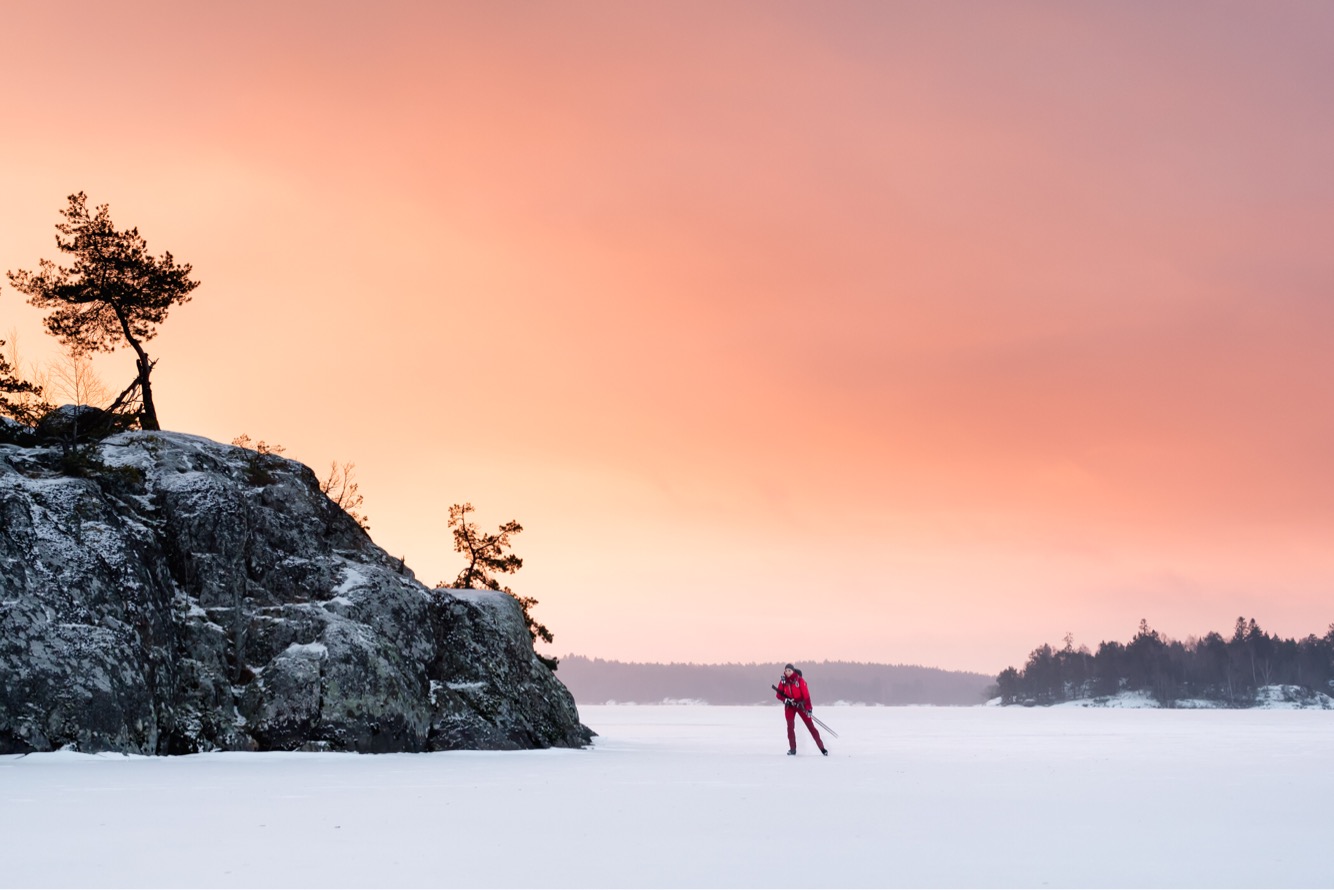 Sweden has roughly 97,500 lakes, and in the winter they freeze over providing the perfect opportunity for skating on natural ice. In colder climates, particularly in the Nordic countries, people have made a pastime of ice-skate touring: travelling long distances on skates, immersed in the local nature (like ski touring). Those who do it love the adventure, the freedom, and the thrill.