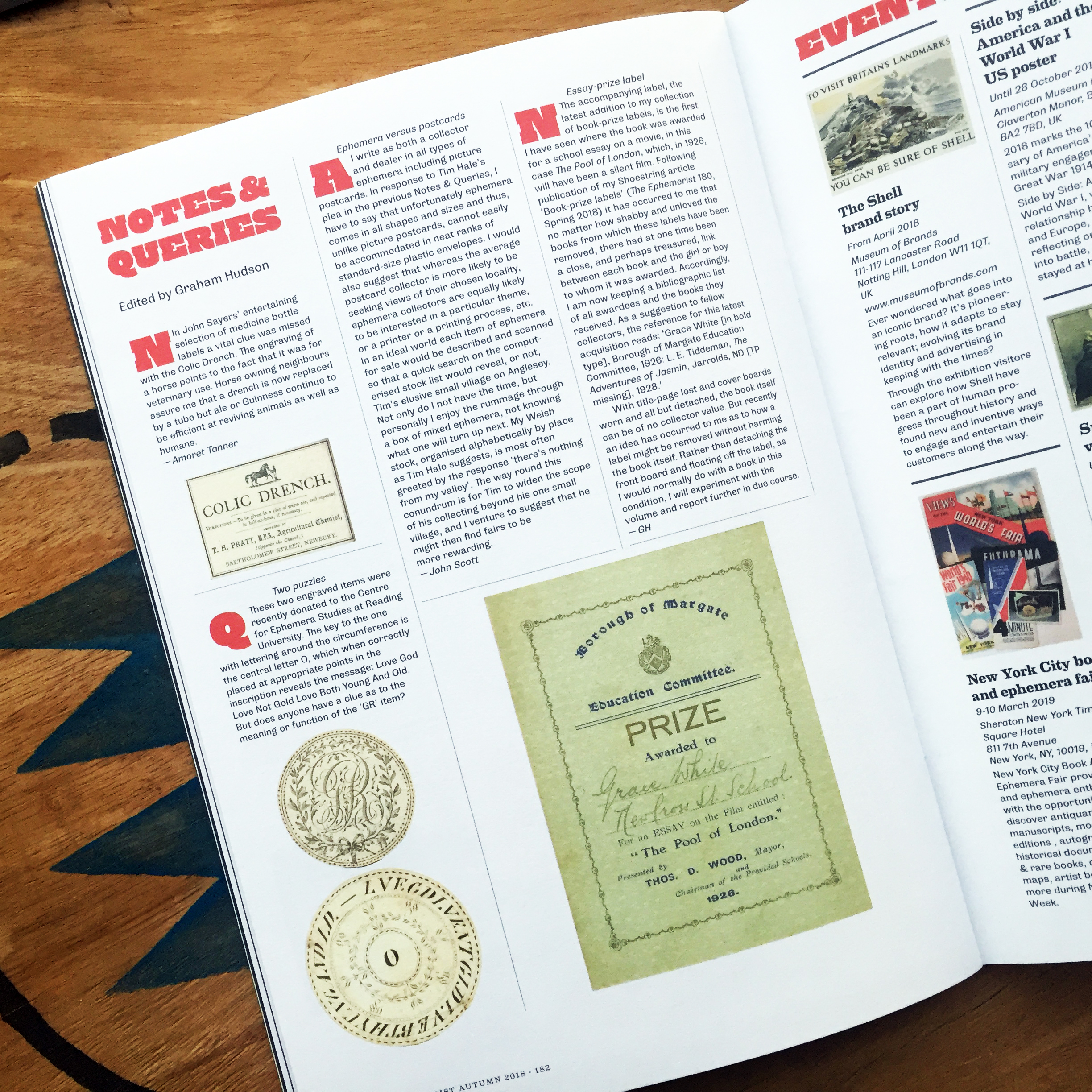 As the quarterly journal of the Ephemera Society, editor Sara Chapman uses the magazine to showcase unexpected items that ‘reflect the moods and mores of past times in a way that more formal records cannot.’