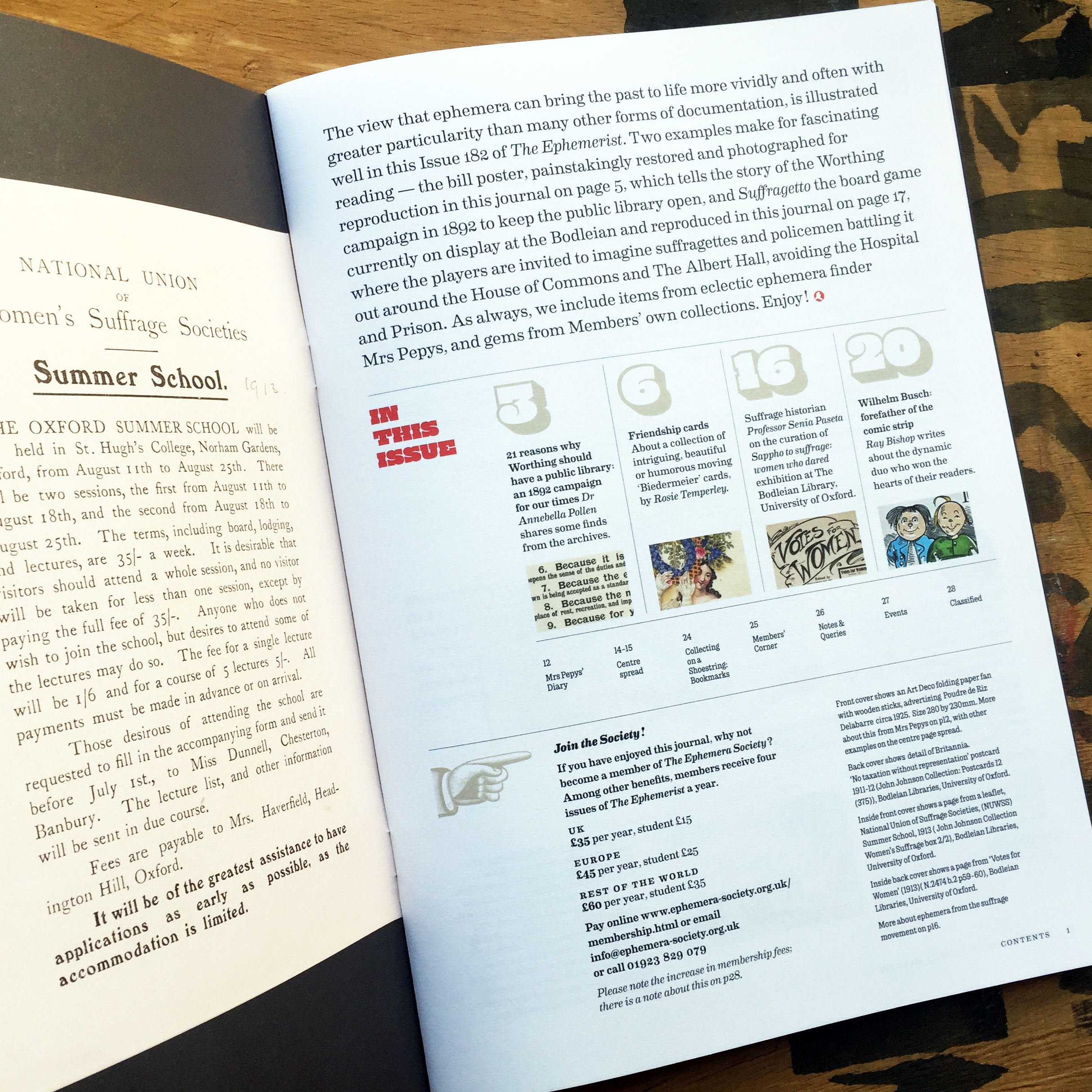 We think ISSUE 182 is our best since the publication’s recent redesign. We have some intriguing stories to tell through ephemera — read about the bill poster campaign to stop the vicar of Worthing shutting down the local library because the women of Worthing were too distracted by novels…