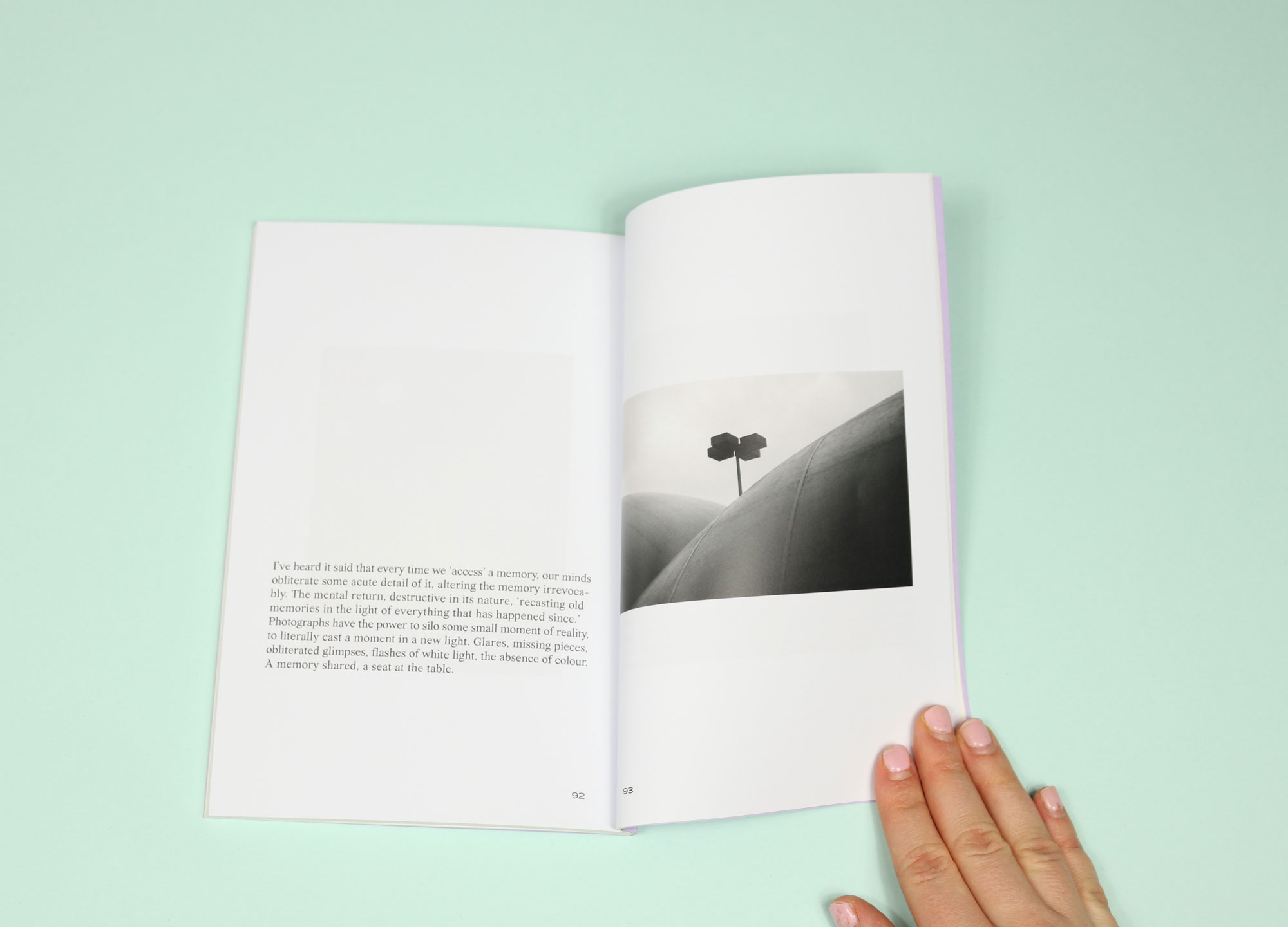 Another beautiful contribution is a photo essay, by Clay Cavender and Bex Liu. Called ‘Returning’, it is a reflection on memory, and its faultiness. In one spread, an abstract architectural shot sits next to the caption: “I’ve heard it said that every time we ‘access’ a memory, our minds obliterate some acute detail of it, altering the memory irrevocably… Photographs have the power to silo some small moment of reality, to literally cast it in a new light”.