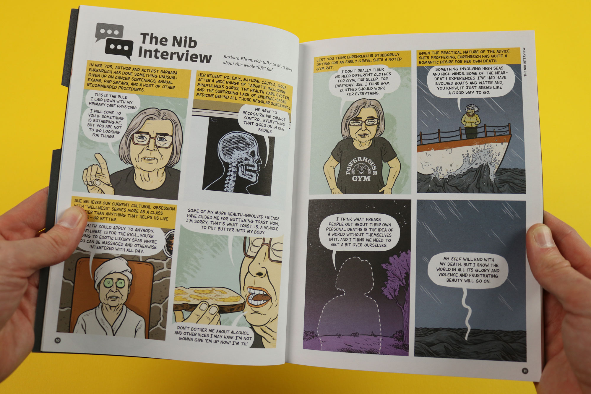 I’m doing everything I want with The Nib — publishing great comics, putting money in artists’ hands, putting out a print magazine. The measure of true success for me is going to be keeping this thing going, building out our membership programme to support the level of work we’re doing, growing the print circulation to tens of thousands, something that lasts decades. That’s the ambition. New magazines can’t often get to those numbers, but I think we have a shot. We’re riding the line between news publications, comics, and indie mags and grabbing a little from each discipline and putting something together that’s unlike anything else out there right now.