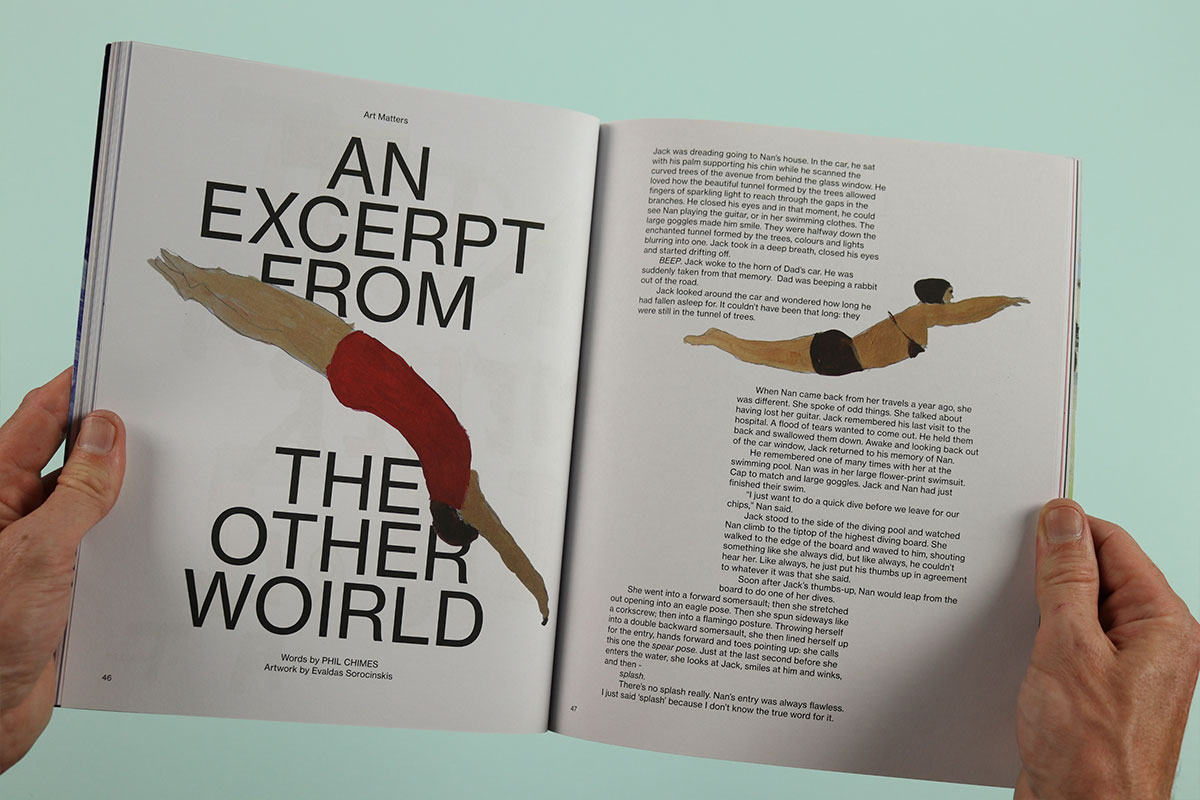 Laura: We actually didn’t really use too many other magazines as a guide! The aim was to be quite free in how we structured and approached the project. The only one that really springs to mind is Creative Growth Magazine (below) – this is a predominantly art-focused magazine by a charity in California supporting artists with developmental, physical and mental disabilities.