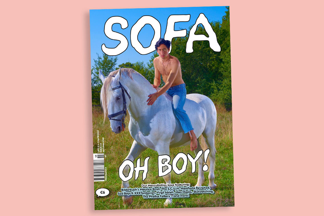 It’s this commitment to experimentation, to running with an idea — however private, or wild, or confused — and following it through, that makes these issues cut through the noise around masculinity. That’s down, in part, to the fact that niche print doesn’t think twice about self-publishing things that would get mainstream outlets sued: in one article, Sofa describes the Rolling Stones as “drug addled war lords,” culminating their “rape [of women? the music industry?], as most successful man devils do, with the corporatization of their pillaging”. It’s a publication shot through with funny, often awkward nuggets, my favourite being the revelation that post-9/11 was a golden era for porn, because all the federal prosecutors who were working on obscenity cases got transferred to Homeland Security, so suddenly no one was policing the porn industry.