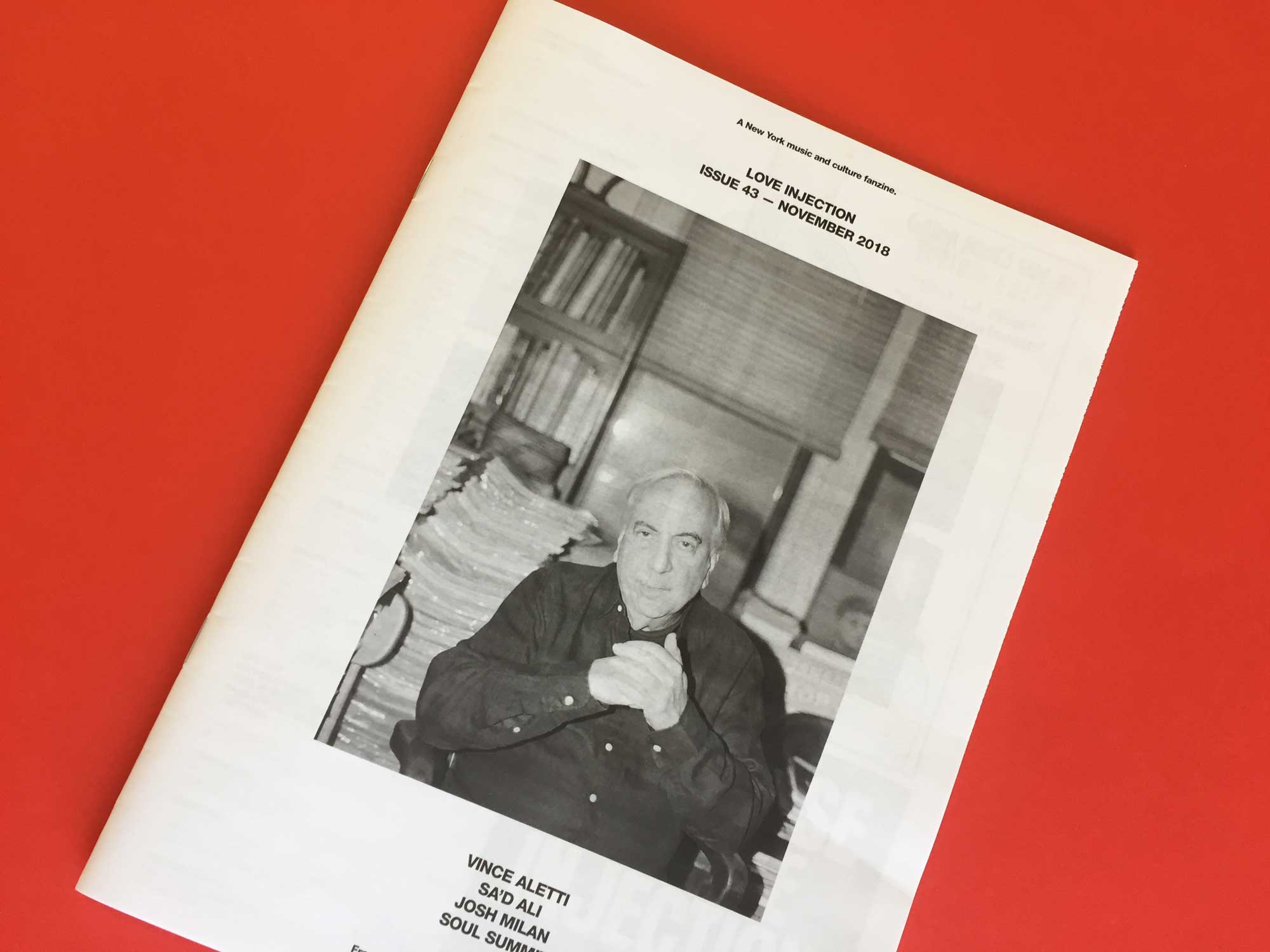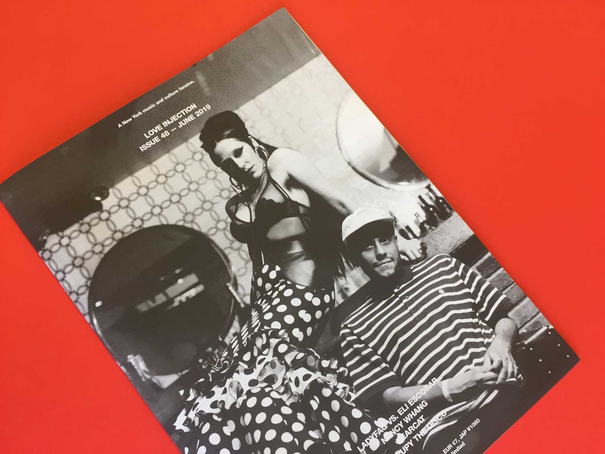 Love Injection is named after the 1979 song by Trussel. A monthly fanzine celebrating the dance music scene in New York, it’s distributed free in the city via a network of record shops. The production value is purposefully low: it’s printed monochrome on cheap newsprint, and its interviews — with legends on the scene like Vince Aletti and Ladyfag — rarely have introductions. The implication is that if you’re reading this zine, you will already know who these people are. This could feel exclusionary but somehow it doesn’t: the interviews themselves are totally unpretentious — more like overheard conversations — and the whole zine is put together with such obvious love, that you feel like you’re being ushered in, rather than pushed out.