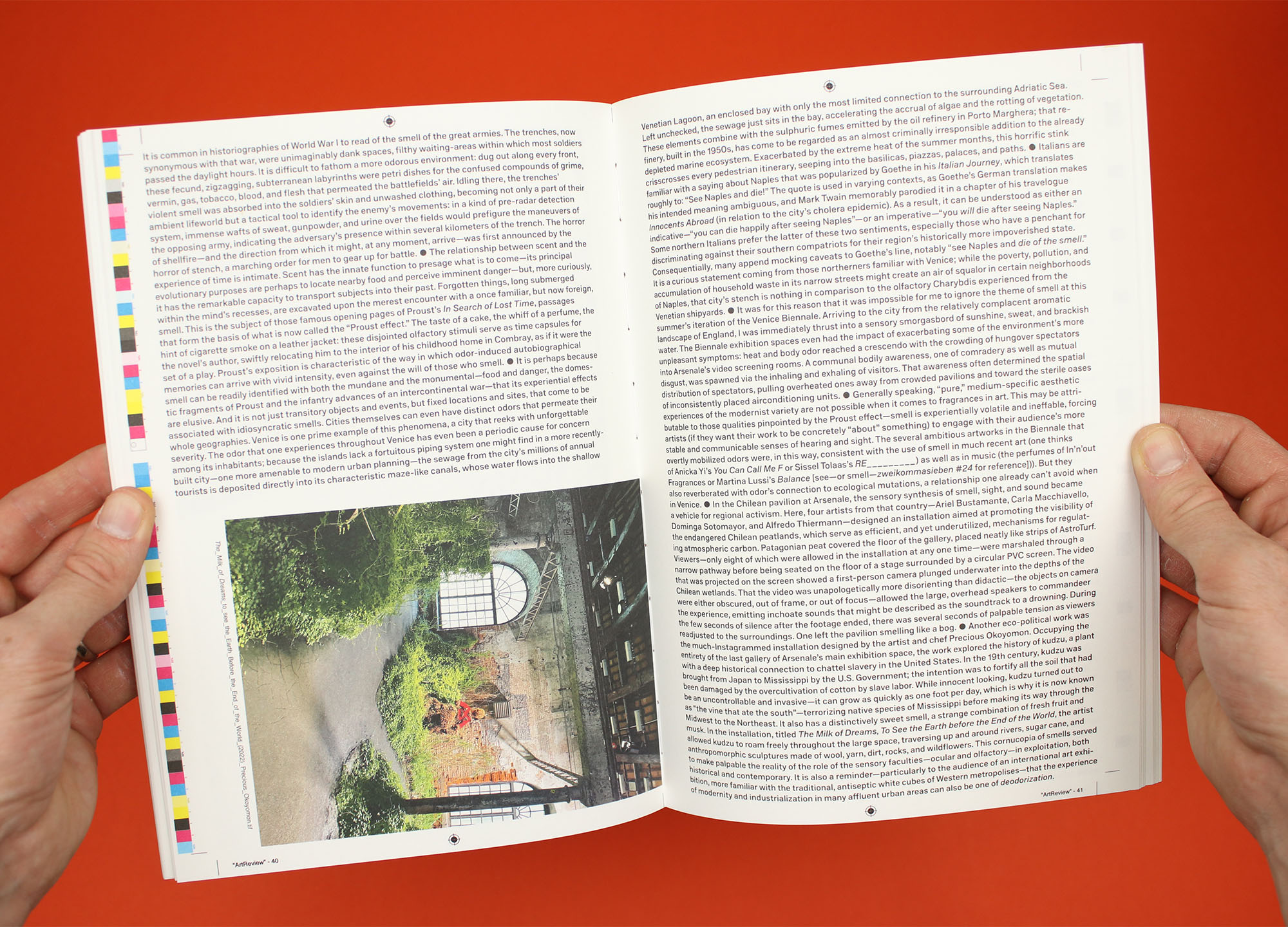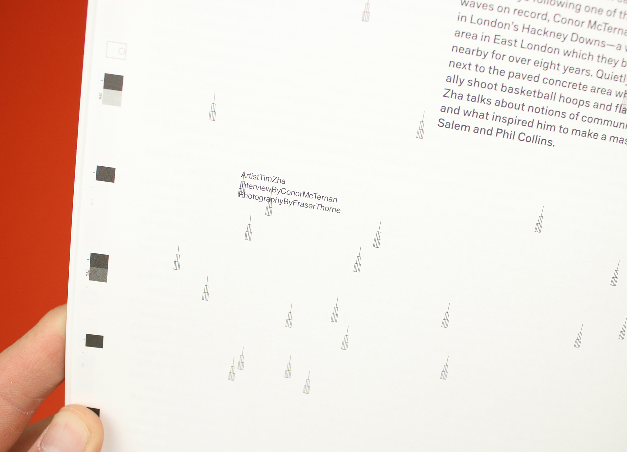 This new grey zone version of Zweikommasieben is no doubt cheaper to produce – as well as being smaller than before, it has also done away with using heavier stock for its cover. But it also feels like it’s having loads of fun, led by graphic designers Dorothee Dähler and Kaj Lehmann, who have chosen to keep the printers’ marks that would usually be trimmed off. This print-y innovation wins them a bit of extra space around the edges of the page, but moreover it provides a reference that they play with throughout the magazine, with lines, blocks and crosshairs scattered through the pages and writer and photographer credits rendered as filenames. (Scroll through the gallery above to see a few examples.)