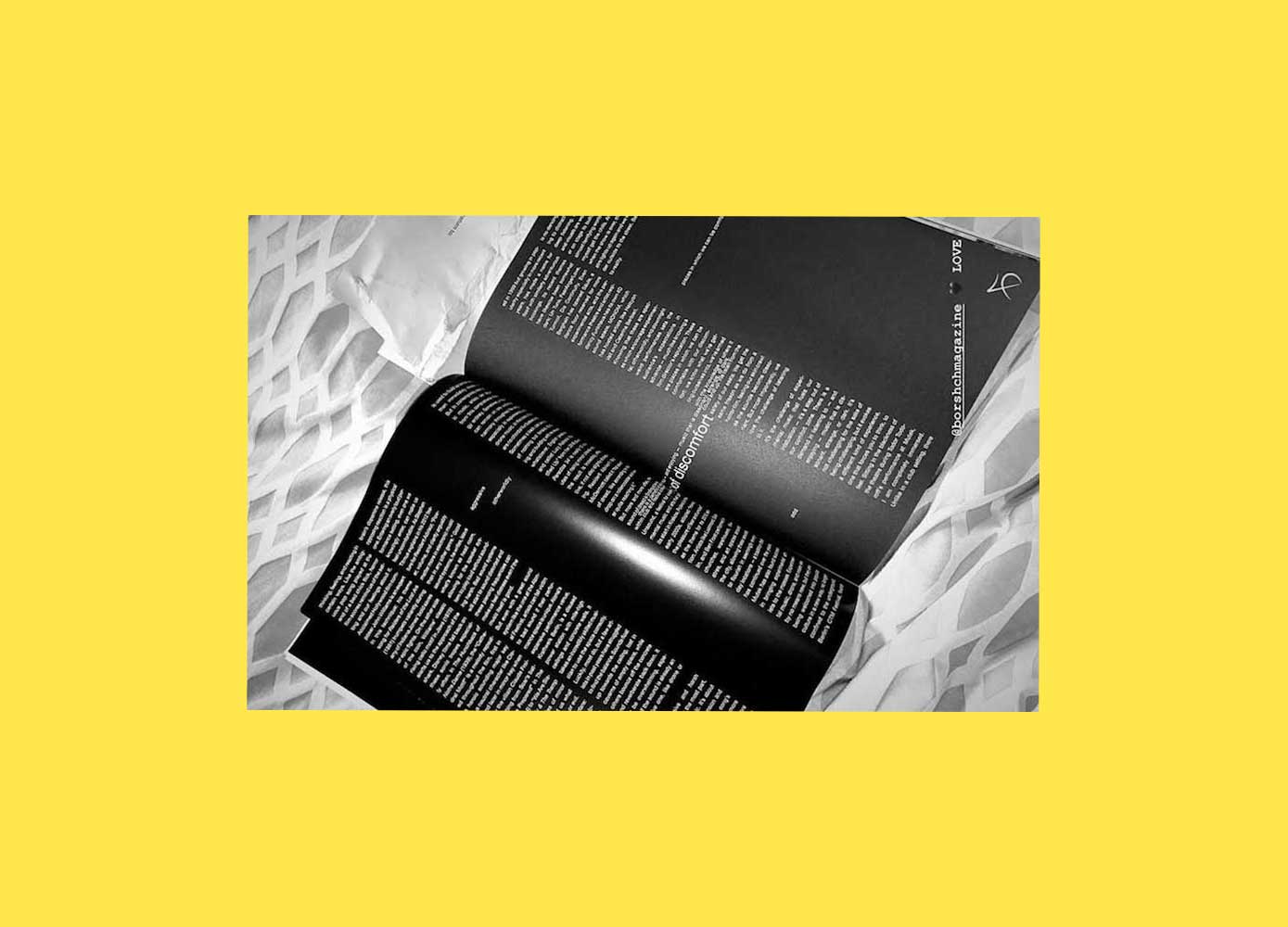 One of the dark interior spreads, against a background of what looks, sexily, like netting.