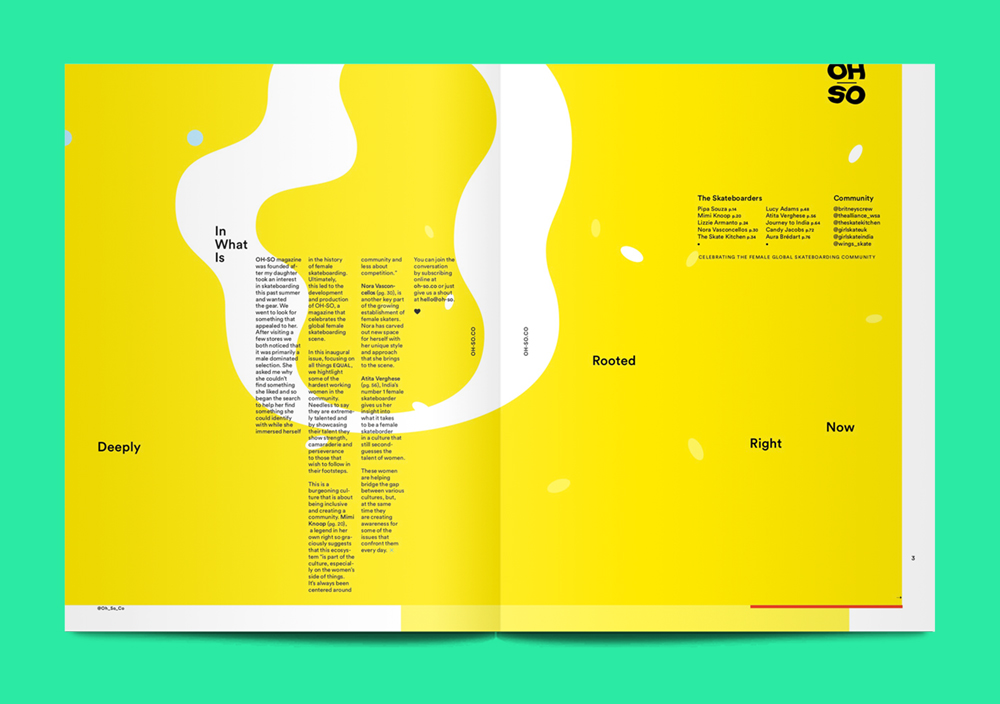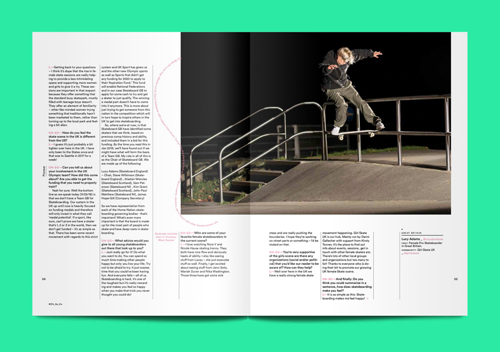 When Rob Hewitt’s seven-year-old daughter Amelia took an interest in skateboarding last summer, they went to buy a board together. The problem was that in every shop they visited, the selection was overwhelmingly male-dominated. Amelia asked him why she couldn’t find anything she liked, and that question ultimately resulted in Oh-So — a magazine that celebrates the global female skateboarding scene, born out of the search for something Amelia could identify with. Skateboarding has been marketed as a rebel pursuit, but, as the opening essay in Oh-So explains, the skate park has been a depressingly male hetero space. The author cites a Vice piece from 2009 which began with a line it’s difficult to forget: “Girl skateboarders aren’t hot. It’s just how it is. I wish they were but they’re not.”