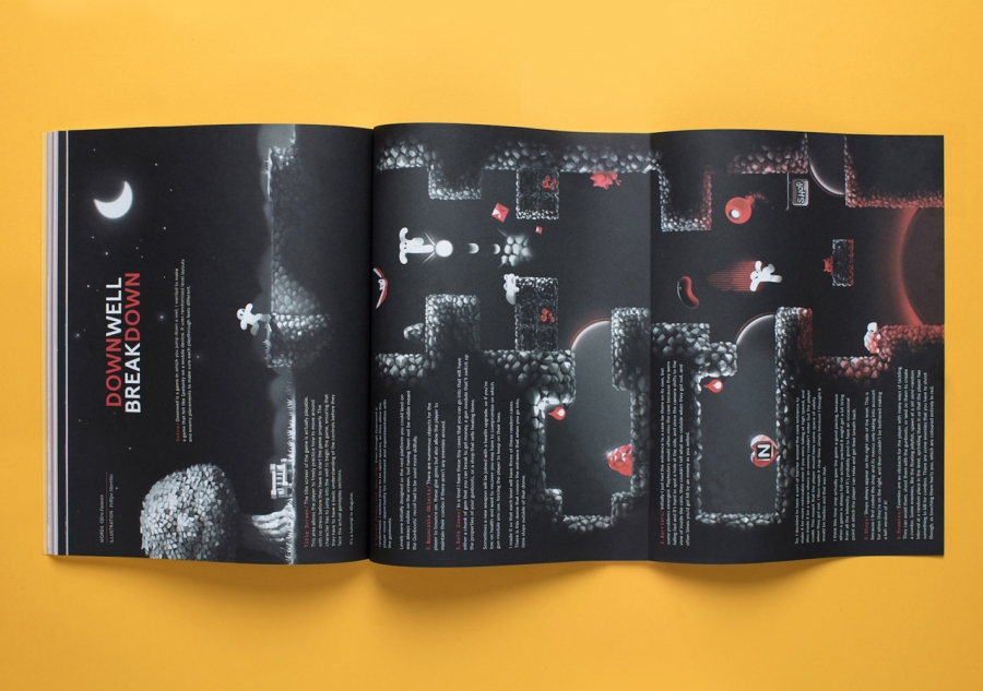 - A four-page fold-out Downwell diagram annotated by the game’s creator Ojiro Fumoto