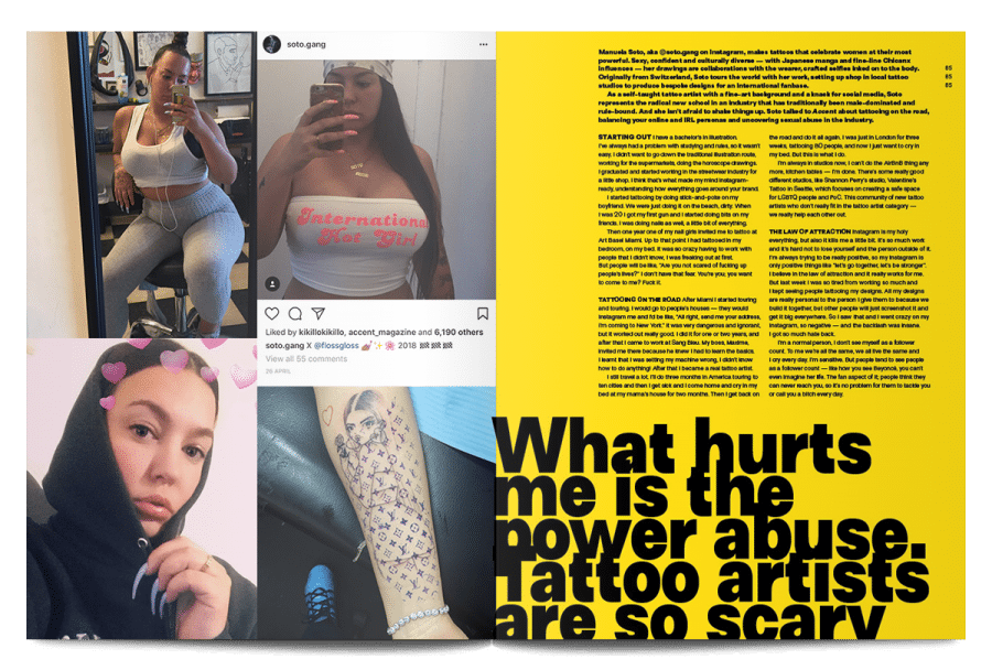 - Manuela Soto (soto.gang) is empowering women across the globe with self-portrait tattoos, and raising awareness about sexual abuse in the tattoo industry