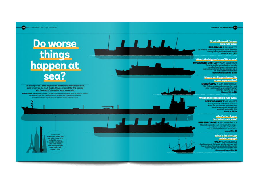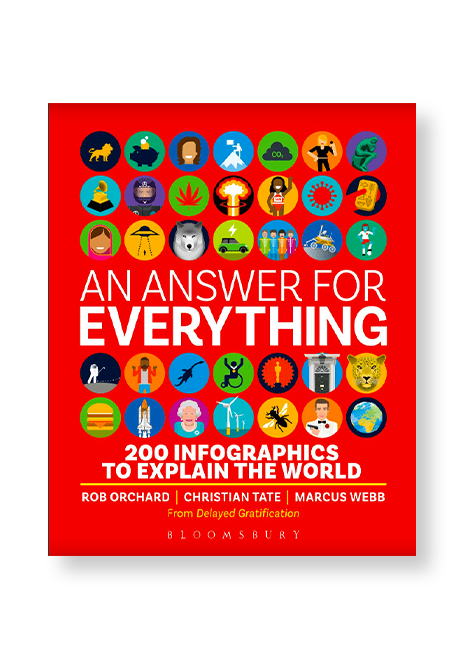 In An Answer For Everything, 200 of the world’s most intriguing questions are settled once and for all through beautiful and brilliant infographics. Created by the team behind the award-winning Delayed Gratification magazine, these compelling, darkly funny data visualisations will change the way you think about… everything.