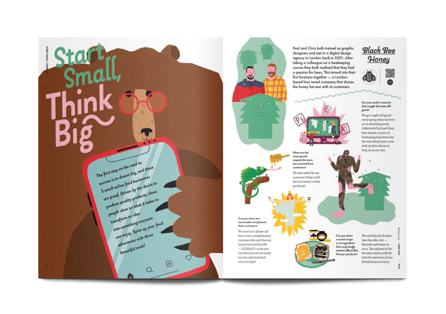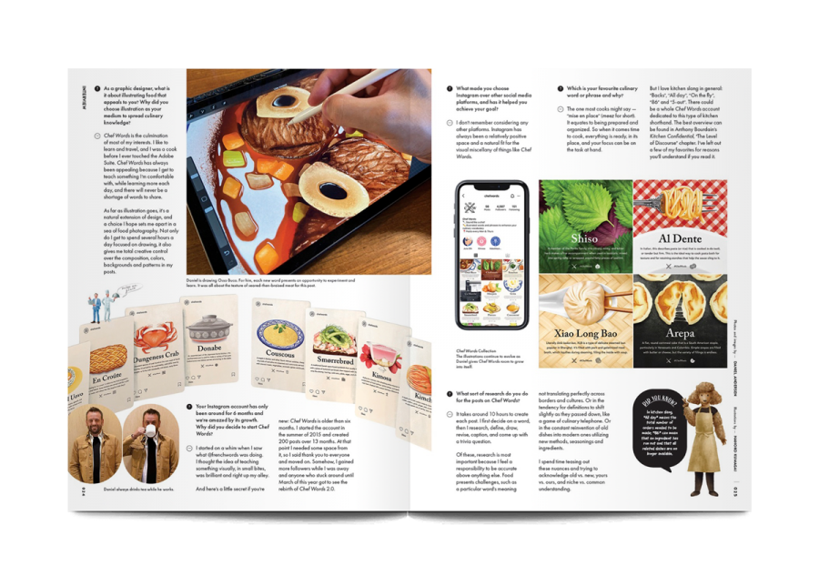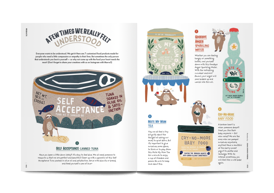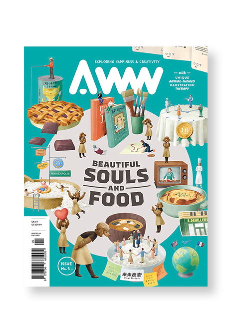 Named Aww, as in, “Aww… isn’t that cute?”, the aim of this magazine is to offer animal illustration to the reader as a kind of therapy. In this issue, entitled ‘Beautiful Souls and Food’, Aww celebrates the way that food has motivated people to make huge lifestyle and career changes.
