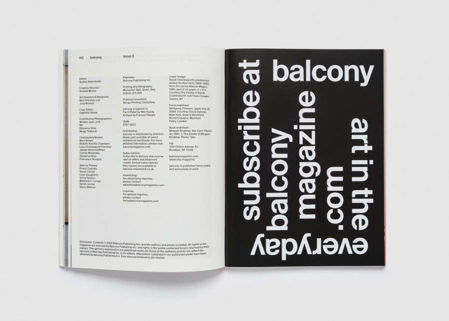 Balcony is founded by Vicente Muñoz and Audrey Rose Smith and designed by Ben Fehrman-Lee and Julia Novitch.