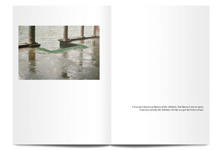 - In Solastalgia, artist Marina Vitaglione personifies Venice, narrating the city’s sinking into the sea in text and images