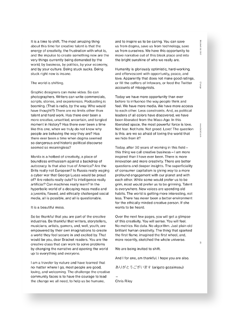 Published in Singapore, Bracket is a broadsheet magazine featuring handwritten responses to a single subject by thinkers and makers from around the world. This latest issue is dedicated to the subject of Change, with particular focus on the restrictions imposed by coronavirus and how we can get unstuck and respond to the shifting demands of living and working now.