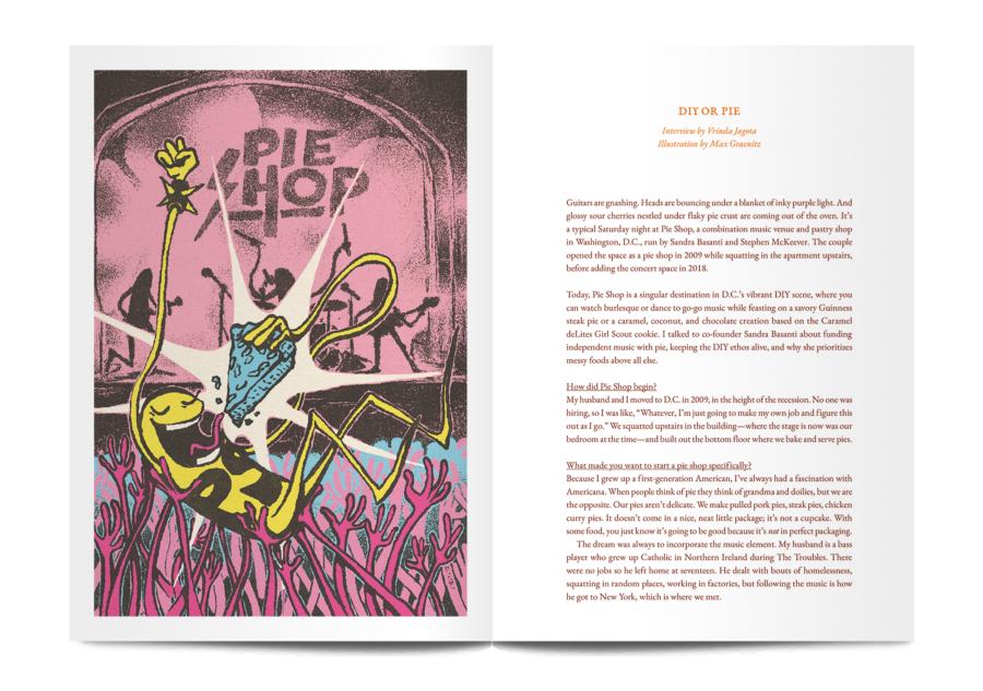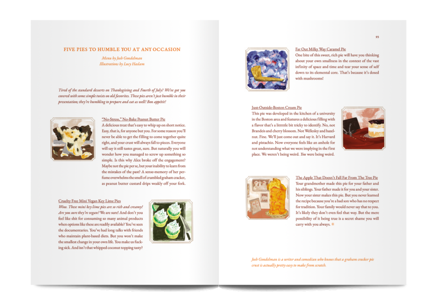 A lovely, literary food magazine published in Brooklyn, Cake Zine’s first two issues were dedicated to an appreciation of cake (‘Sexy Cake’ and ‘Wicked Cake’ respectively). But this third issue takes a different culinary direction, devoted to the crusty delights of pie, and the various interpretations of ‘Humble Pie’.