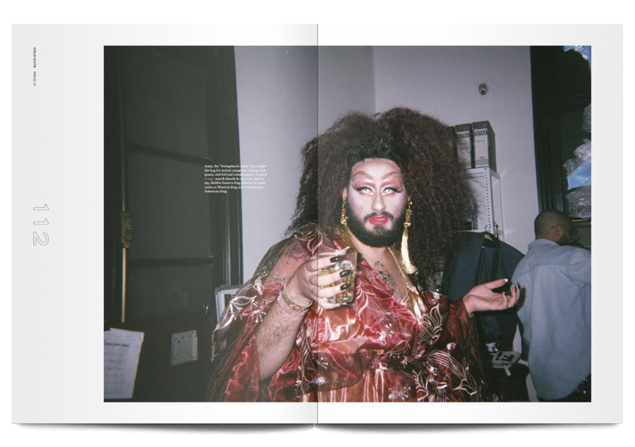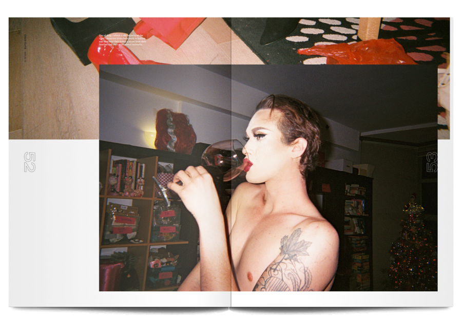This first issue is an extended photo collection that runs alongside a short story about two drag queens getting ready to appear in a local nightclub. Spreading the text throughout the magazine in short little snippets, this is a playful and absorbing form of visual storytelling.