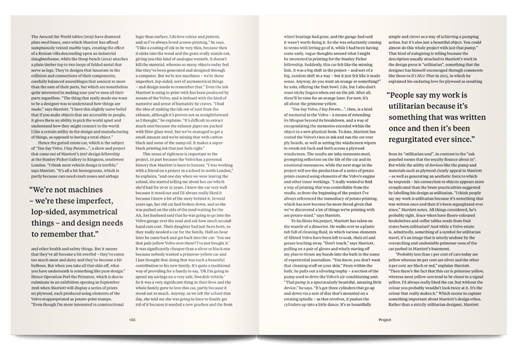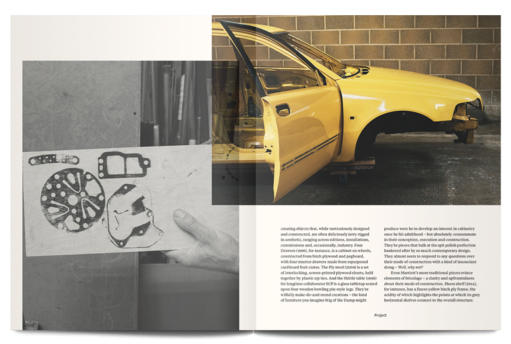 - A visit to Michael Marriott’s studio, where he is meticulously dismantling a primrose yellow Volvo