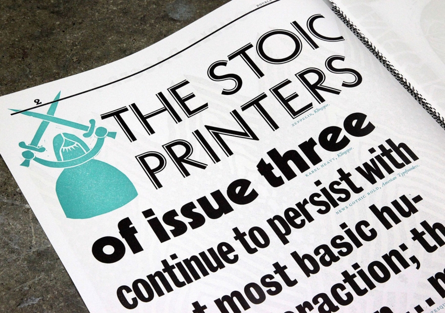 Double Dagger is a broadsheet “extolling the virtues of reproducing the printed word by the medium of letterpress”. Rather than using the post-digital plastic letterpress, they return to printing from movable objects; mostly lead type (the process invented by Gutenberg in the 15th century) supplemented by a smattering of wood, lino and rubber litho blanket.