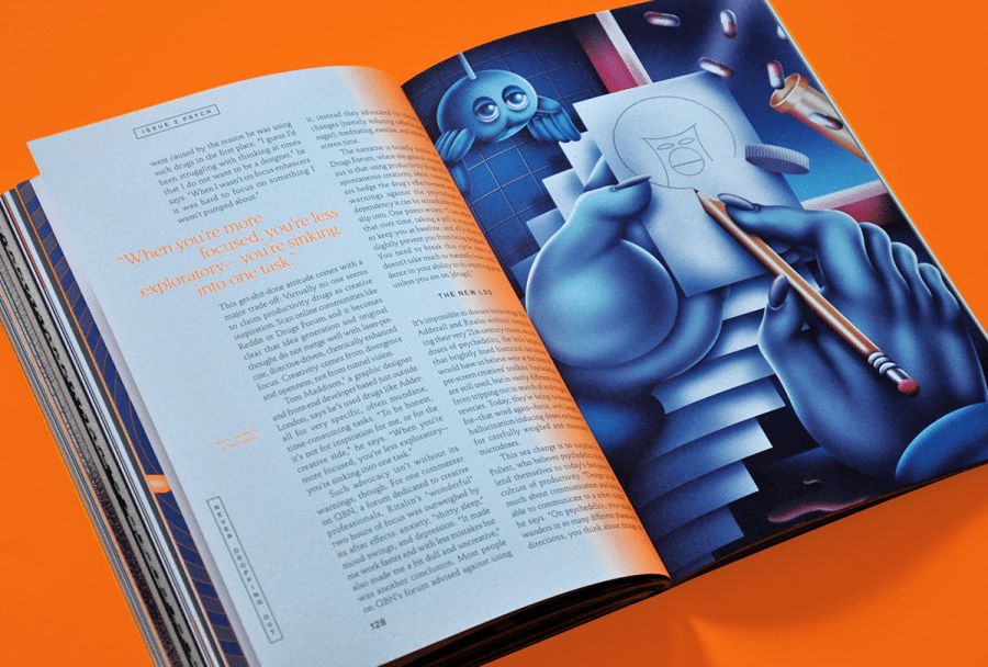 This second issue orbits around the intersection of design and mind-altering experiences. Think the unknown women behind 1960s psychedelic graphics, acid-laced pictorials, psychics forecasting the future of design, and brand masterminds who are manipulating your buying habits.