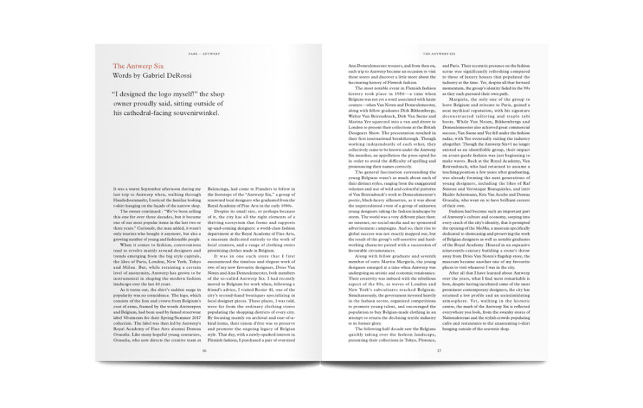This issue explores Antwerp, where old tram-lines wind through cobbled streets, and the gentle lean of the city’s many well-preserved Baroque buildings create a storybook texture with which you take it all in.