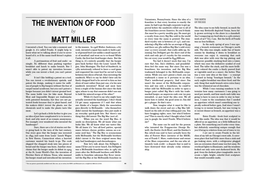 Produced by the people behind the brilliantly crazy food magazine Food&, Fast Food& is a smaller, and somehow even stranger title. Created to fit in between issues of Food&, it’s a quick fix publishing project that allows the team to play with the ideas that didn’t make it into the main magazine. This launch issue focuses on the theme of ‘Patents’.