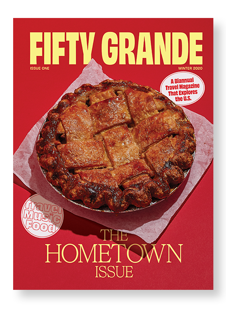 Fifty Grande is a biannual travel magazine that explores the U.S. This debut issue is themed around hometowns.