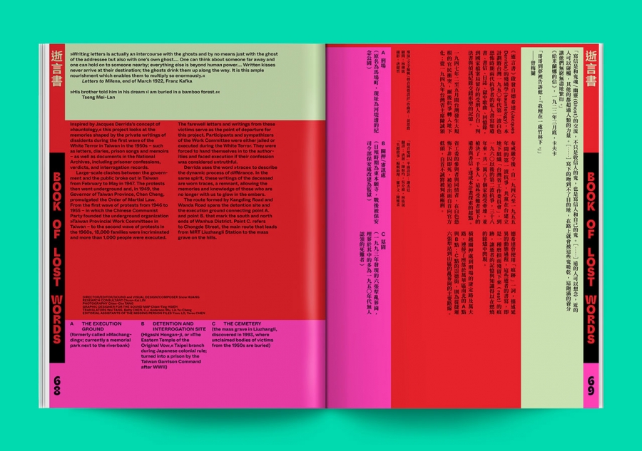 - Inspired by Jacques Derrida, Snow Huang looks at the memories shaped by the private writings of dissidents, prisoner confessions, verdicts, and interrogation records from the first wave of the White Terror in 1950s Taiwan
